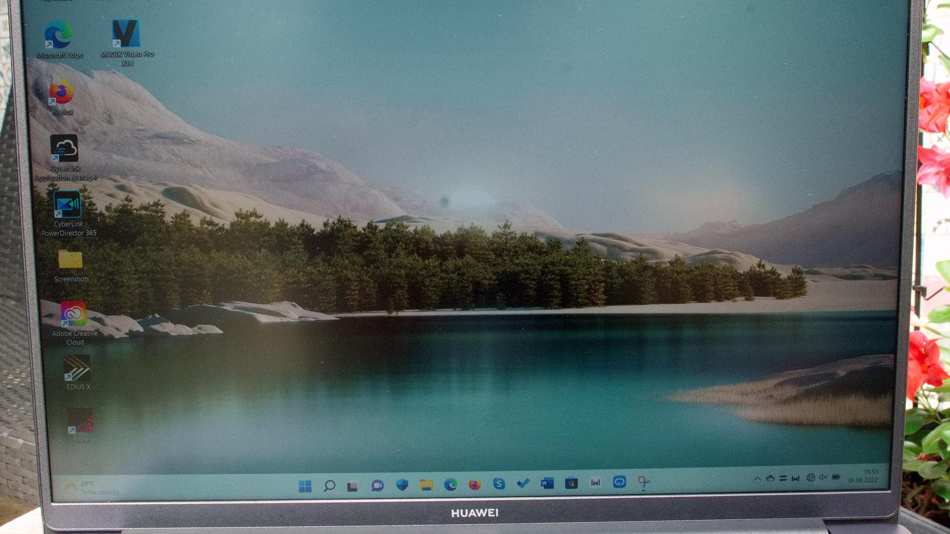 Unter Windows 11 bringt die geringere Auflösung des MateBook-Displays immerhin einen Vorteil: Man muss die Skalierung nicht so hoch wählen. Genügend Arbeitsfläche auf dem Desktop hat man trotzdem, und auch die Übersicht in der Schnittsoftware geht in Ordnung, wenn man nicht allzu große Projekte realisieren möchte. Ansonsten ist viel Hin- und Herscrollen in der Zeitleiste angesagt. Die Blickwinkelstabilität ist dank IPS-Technik ordentlich, dennoch empfanden wir das Bild bei seitlichem Einblick nicht immer als hundertprozentig stabil. Gerade ein kleiner Helligkeitsunterschied ist dann doch auszumachen. Aufgrund der matten Beschichtung reflektiert das Display aber glücklicherweise kaum, was gerade bei Tag die Augen schont. Die Farbdarstellung ist ebenfalls gut, die Farben wirken authentisch, sicherlich auch aufgrund der 100 Prozent sRGB-Abdeckung.