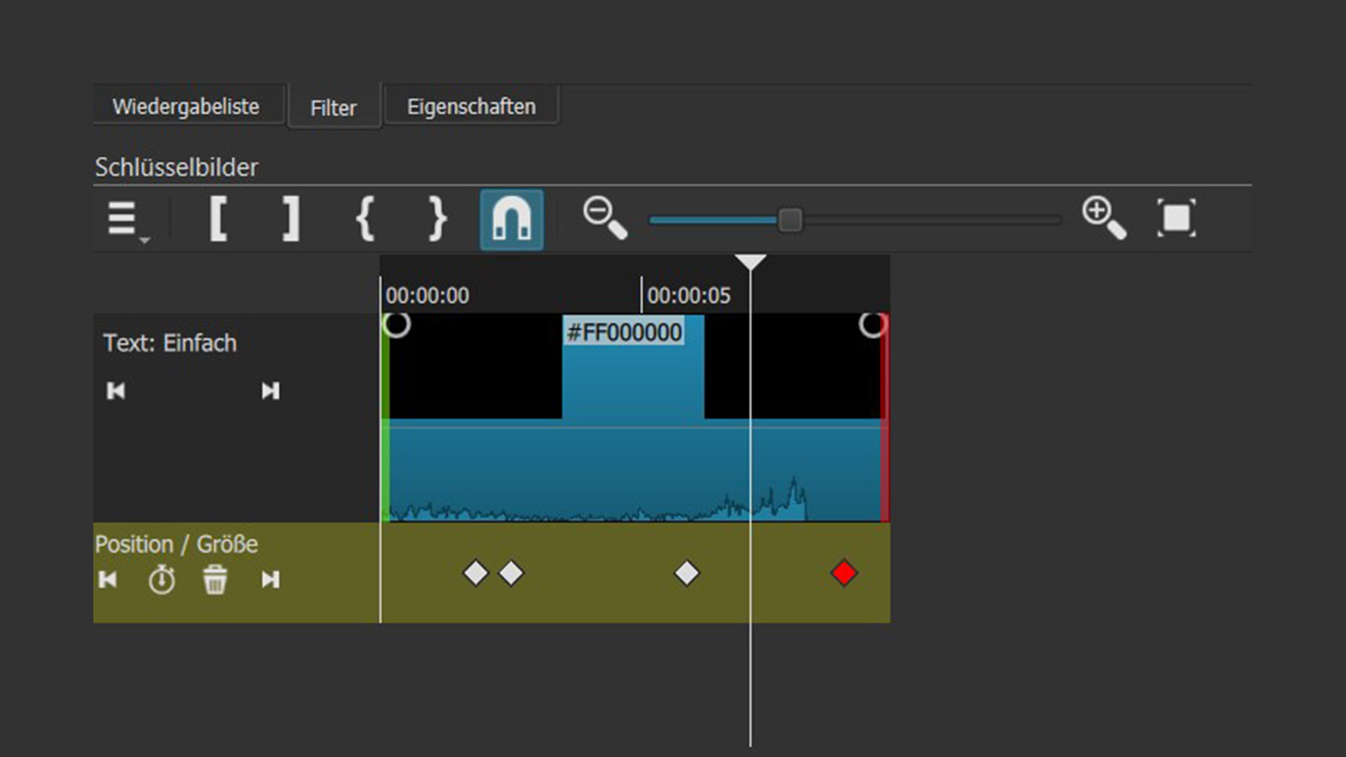 Über eine separate Keyframe-Zeitleiste hat man die gesetzten Schlüsselbilder für jede Szene stets im Blick und kann diese hier auch verschieben und neu bestimmen.