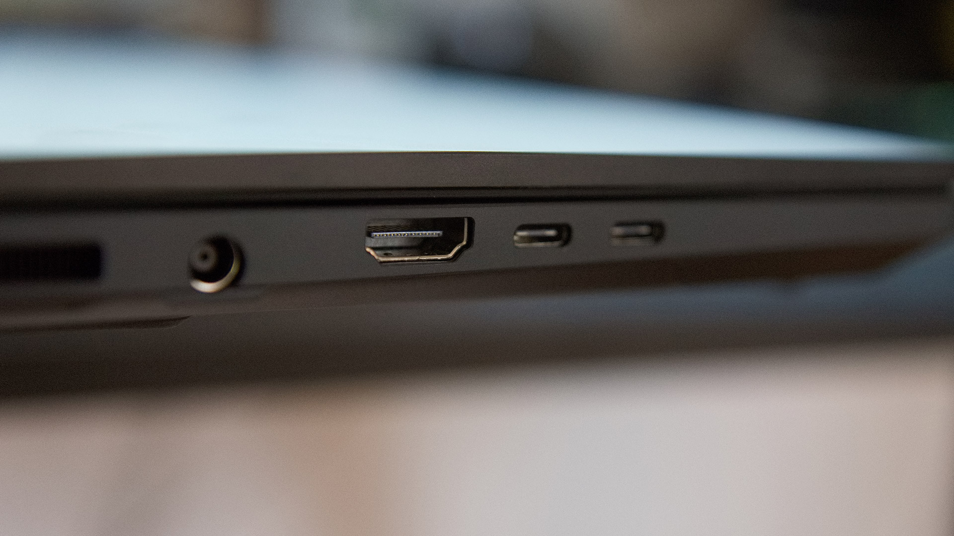 Das Studiobook 16 bietet auf der rechten Seite von vorne betrachtet einen HDMI-Anschluss sowie zwei USB-C-Buchsen und offeriert hier auch noch eine USB-Typ-A-Schnittstelle.