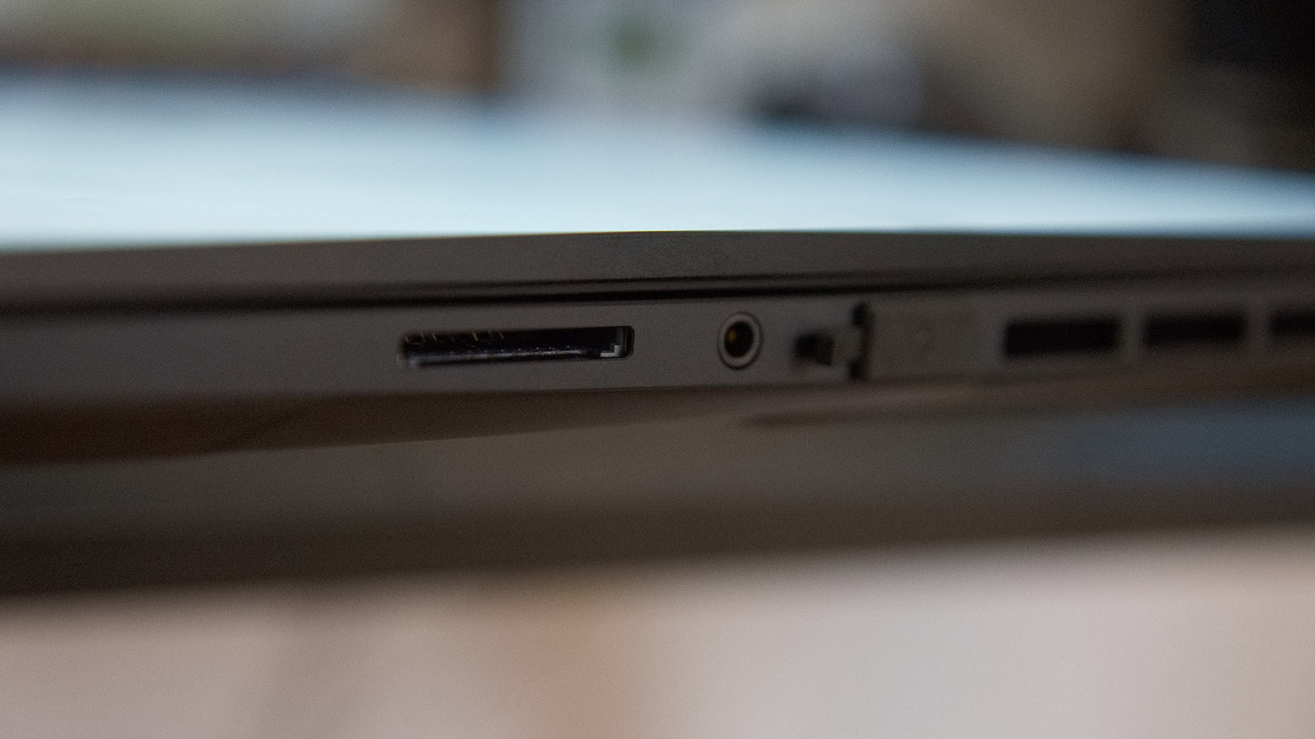 ... sowie einen Kartenleser und die Audio-Kombibuchse. Auch hier integriert Asus noch eine USB-Typ-A-Buchse, die der Hersteller bei Nichtbenutzung mit einer kleinen Gummikappe schützt.