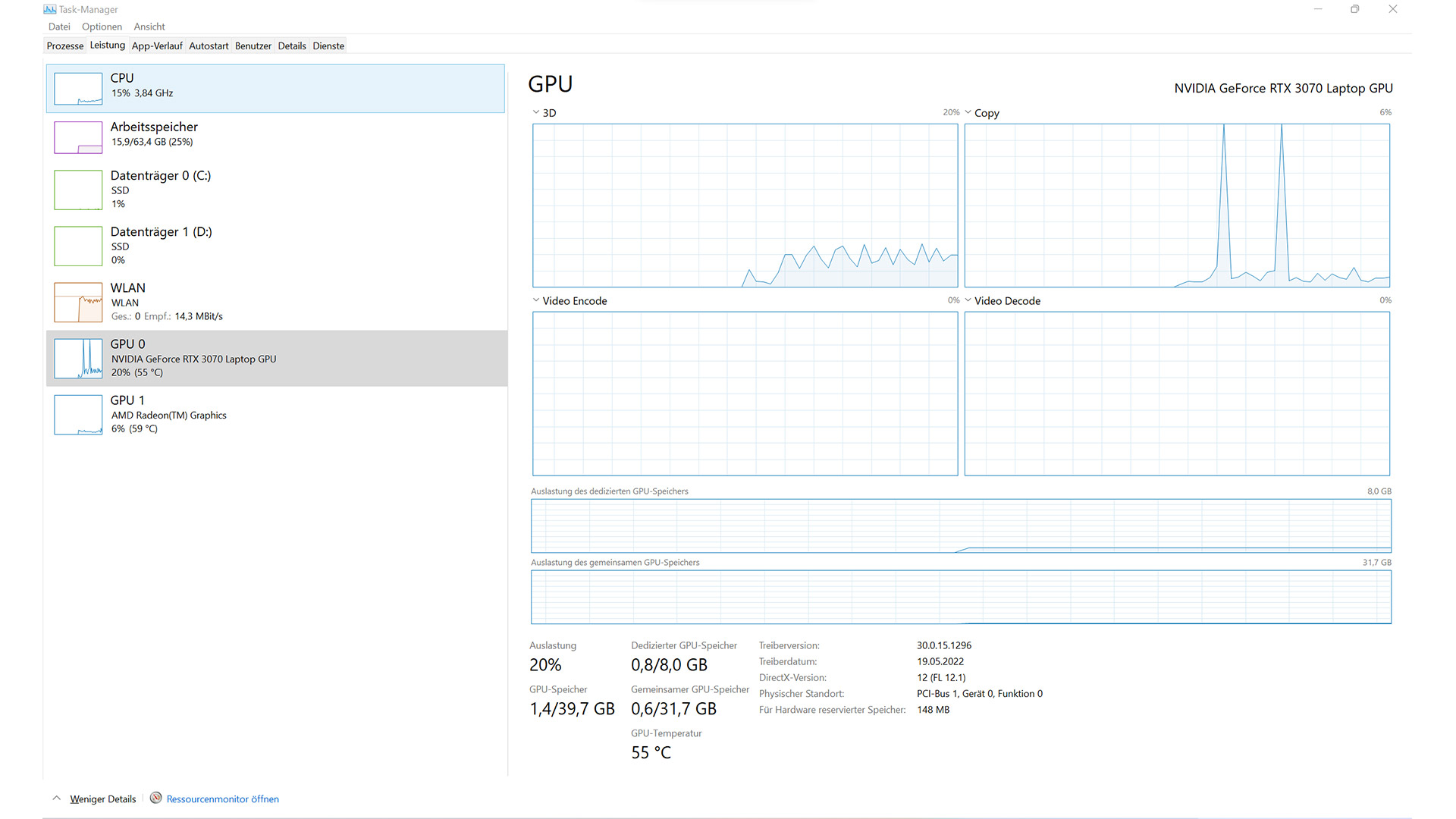 Zusätzlich zur AMD-Grafikeinheit dient dem Asus Studiobook 16 eine Nvidia GeForce RTX 3070 Laptop GPU als dedizierte Grafikkarte.