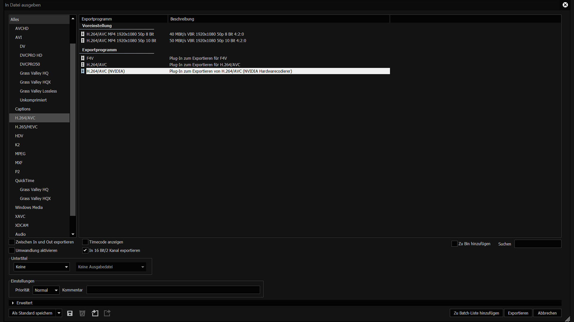 In Edius X kann man in den Exporteinstellungen explizit die Hardware-Codierung für Nvidia-Grafikeinheiten als eigenes Profil bei H.264 anwählen.