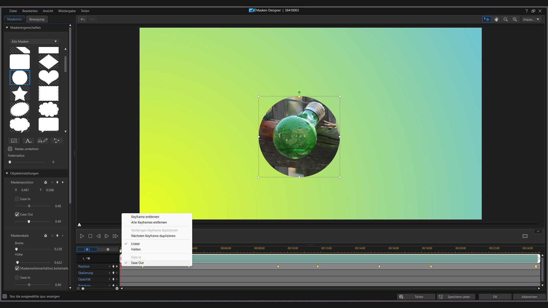 Der Masken-Designer ist leicht verbessert und erlaubt jetzt etwa auch Ein- und Ausblendungen in Bewegungen, die mit Keyframes animiert wurden.