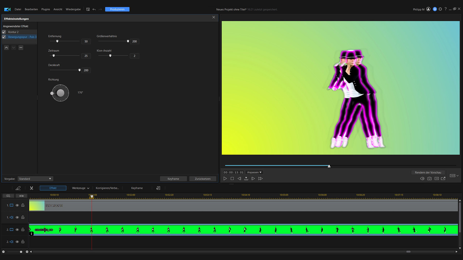 Die KI-Objekterkennung für Videoeffekte ist eine tolle Sache und erlaubt schicke Effekte, die sich wie der "Klonen-Effekt" hier im Beispiel auch noch manuelle anpassen lassen.