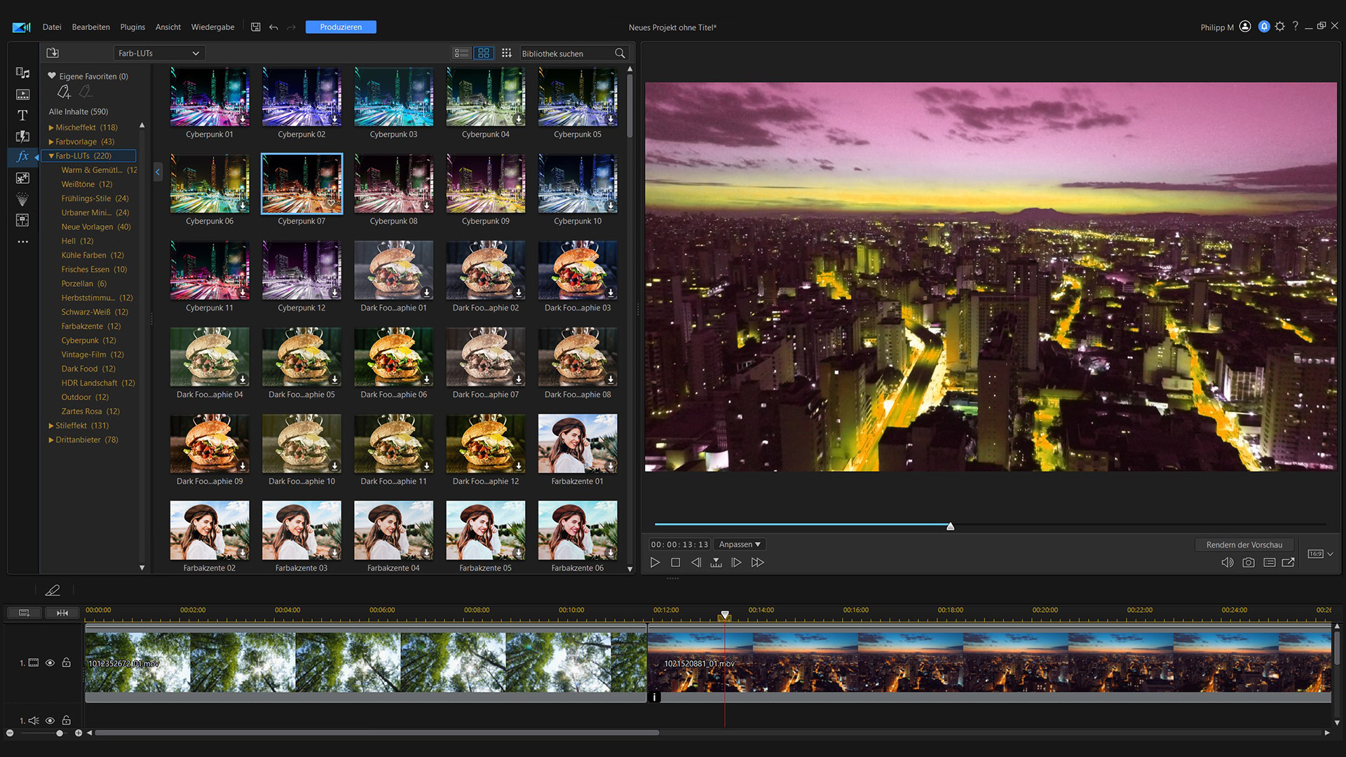 Die Vielzahl der LUT-Vorlagen im PowerDirector 365 gefällt und sind eine klare Bereicherung. Hier kann man schnell einen bestimmten Stil für das eigene Projekt erzeugen.