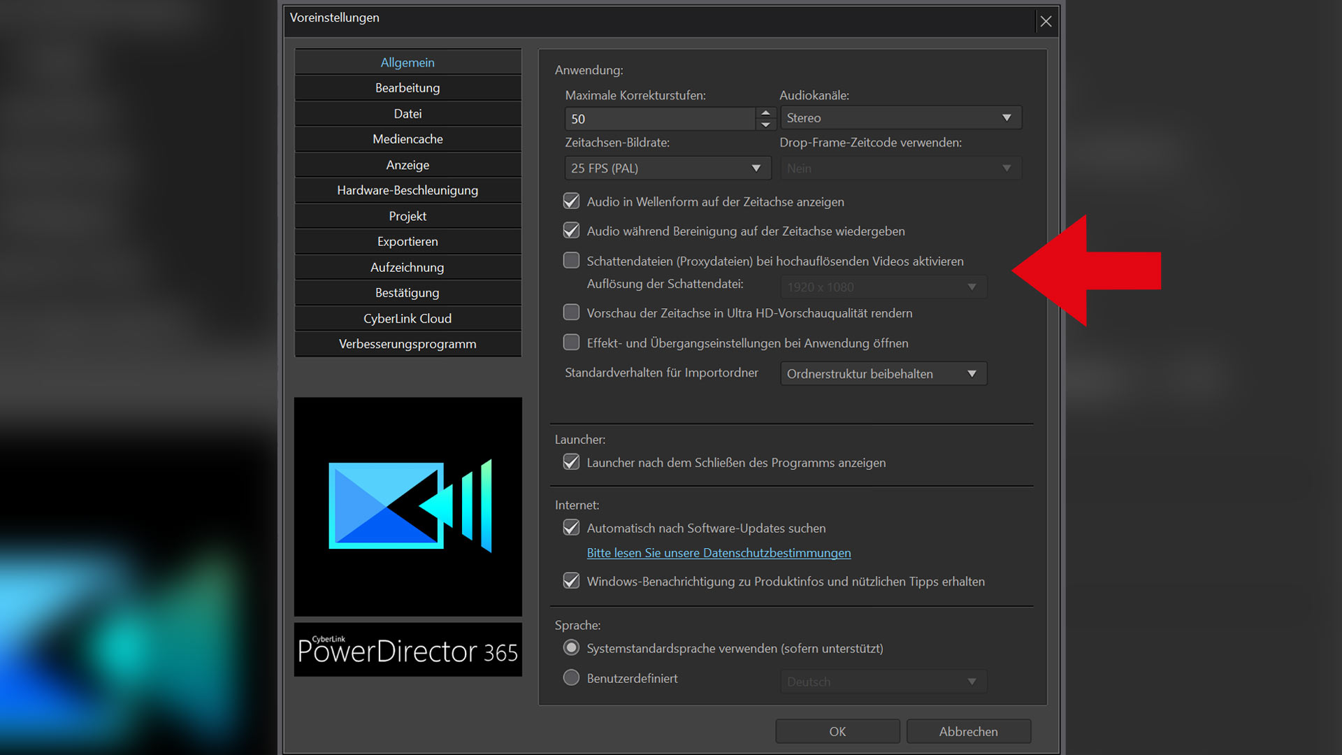 Wer einen leistungsfähigen Schnittrechner sein Eigen nennt, braucht keine Proxy-Dateien. Im Voreinstellungs-Menü kann man diese ausschalten (roter Pfeil).