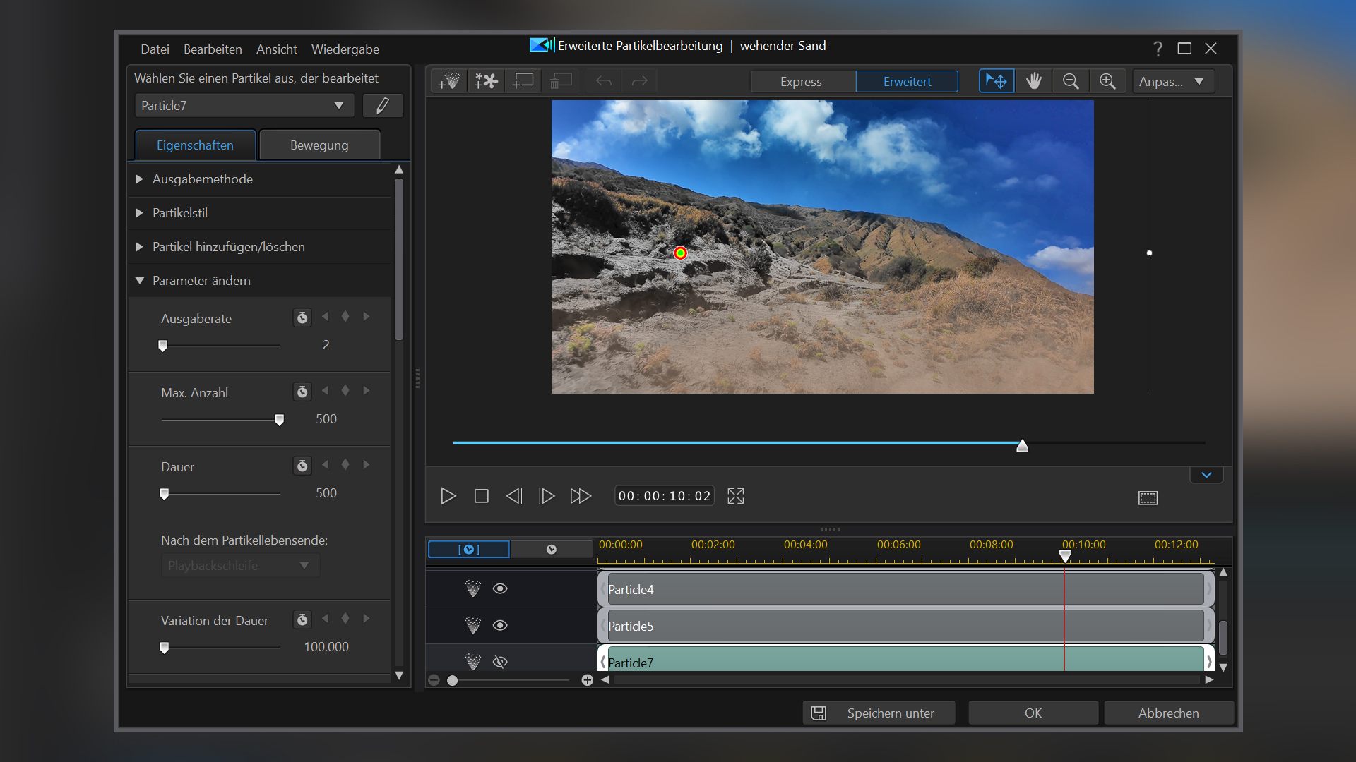 Wer einmal bei PowerDirector einsteigt, wird mit dem Programm lange bleiben können, denn mit zahlreichen Effekten, Blenden, Overlays und Titeleffekten qualifiziert sich das Schnittprogramm auch für Profi-Anwendungen. Darunter zählt unter anderem der Partikel-Designer, der jetzt in den Reiter „Overlays“ gerutscht und damit etwas versteckt ist. Wem die gängigsten Einstellungsmöglichkeiten nicht reichen, kann per Rechtsklick das altbekannte Bearbeitungsfenster öffnen und dort viele Parameter bis in das kleinste Detail ändern – ideal für einen Staub-Effekt auf Drohnen-Aufnahmen, wie wir im Video zeigen.