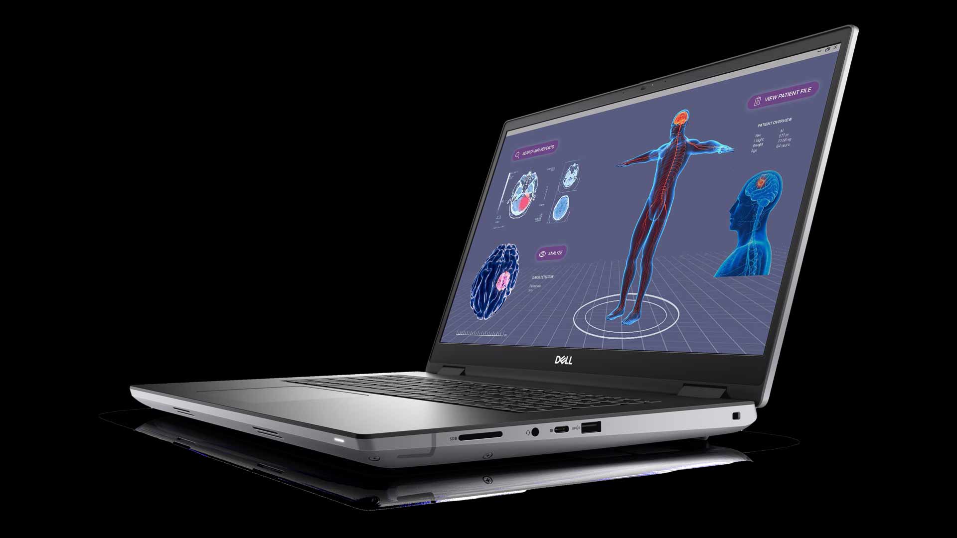 Das Precision 7780 Workstation-Notebook bietet alle wichtigen Anschlüsse und zudem einen SD-Karten-Schacht. Die Oberflächen sind unempfindlich und das Display erfreulicherweise spiegelungsfrei matt.