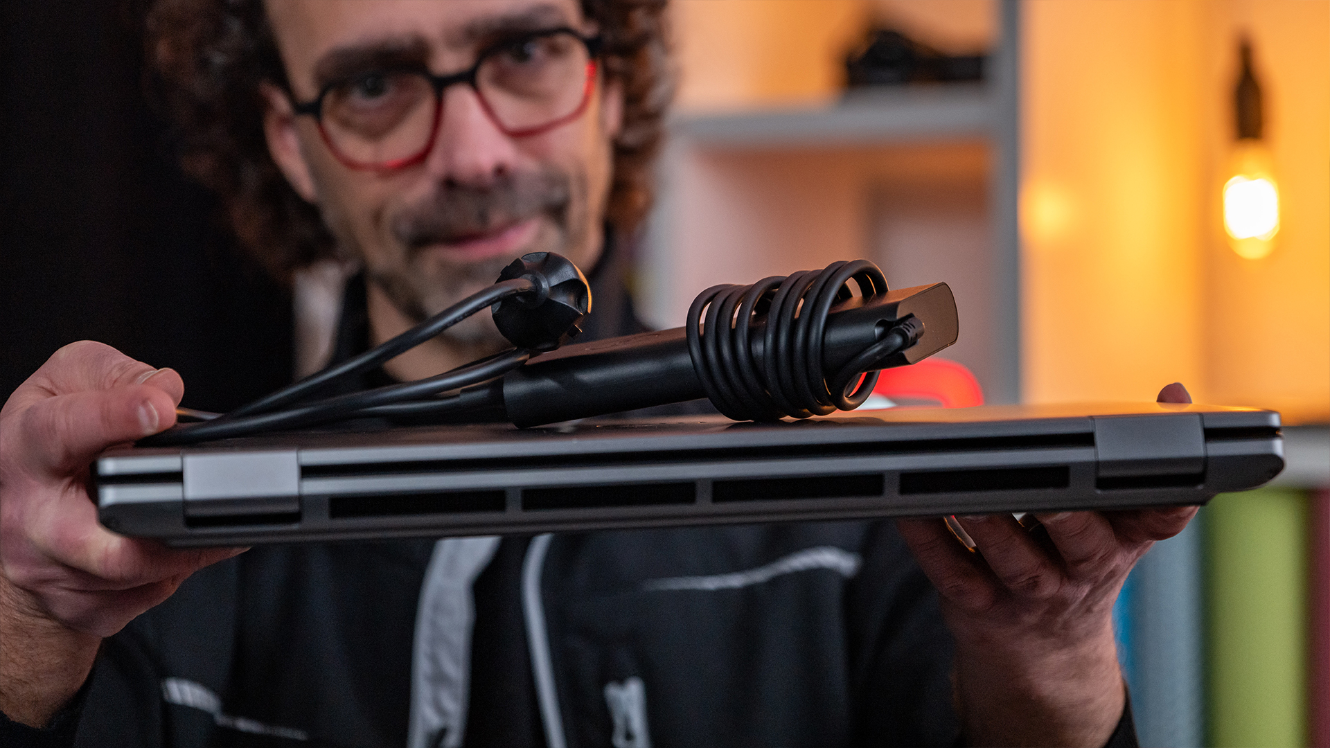 AUSSTATTUNGIn unserem Testsystem war mit der 1TB großen M.2 SSD eine vergleichsweise harmlose (kleine) Festplatte installiert, doch hier lässt sich eine zweite M.2-SSD mit bis zu 4TB einbauen und zudem ein Raid bilden. Außerdem gibt es an der Workstation nicht, wie inzwischen fast üblich, nur USB-C-Schnittstellen, sondern weiterhin eine HDMI-Buchse sowie USB-A-Schnittstellen. Ebenfalls noch mit dabei ist ein eigener Stromanschluss für das mit Kabeln über 600 Gramm schwere Netzteil. Wobei dieses nicht zwingend notwendig ist, da sich das Notebook auch via USB-C mit Strom versorgen lässt. Allerdings dürfte es schwer fallen, die 240 Watt per USB-C zu liefern. Entsprechend läuft das Notebook dann mit reduzierter Leistung und war auch nicht dazu zu überreden, mehr Dampf zu machen. Wer wirklich schneiden will, kommt also nicht umhin das Netzteil mitzuschleppen.