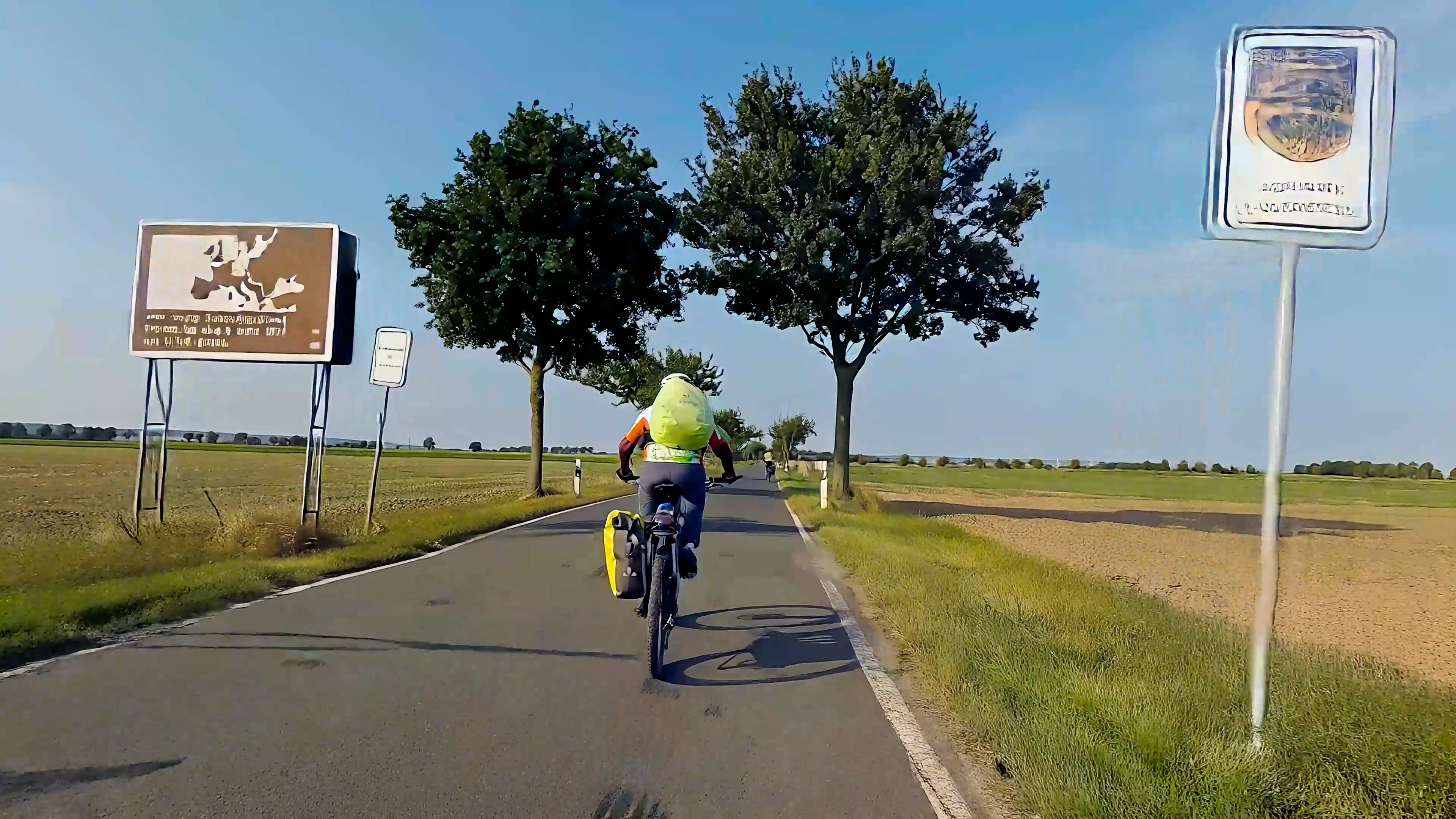 Teil des Abschlussfilms war die Dokumentation einer Radtour von der Reichenau bis nach Rügen, also einmal diagonal durch Deutschland. In diesem Zug passierten sie auch die Zonengrenze mit entsprechendem Hinweisschild. Dumm nur, wenn die Actioncam-Aufnahme kurz vor der Durchfahrt stoppt. Schafft es Premiere Pro die Durchfahrt nachzustellen und Schilder, Fahrradfahrer*innen und Umwelt gut nachzubilden? Jein. Beim ersten Abspielen fiel uns noch kein Unterschied auf, weil die Kamerabewegung trotz hohem Tempo gleichbleibt und das Schild gut aus dem Bildausschnitt herausgleitet. Bei genauerem Hinsehen offenbart sich jedoch, dass die Schrift auf dem Schild nicht mehr wirklich an eine solche erinnert und auch Farbe sowie Auflösung an den Bildrändern etwas ausfransen. Dennoch, für Social Media und ähnliche Plattformen reicht diese Qualität aus. Nur, wer das Video im richtigen Moment pausiert, wird die KI-Generierung bemerken.