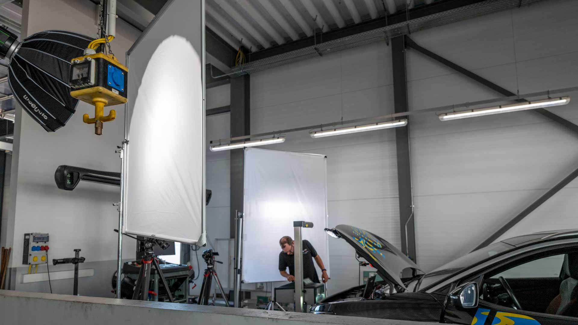 Die Diffusoren waren wieder in der Praxis mit dabei und mussten im Bereich Automotiv mit vielen spiegelnden Flächen ihre Fähigkeiten zeigen. Das heißt aber auch: Hier darf nichts umfallen – die richtige Sicherung ist Elementar.