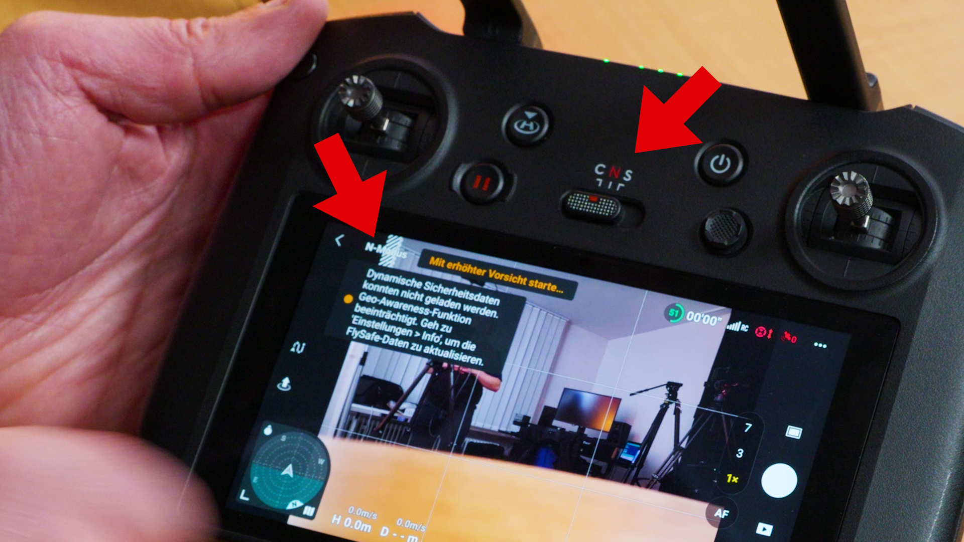 Am Anfang befindet sich jede DJI-Drohne immer im Normalmodus, auch wenn die Fernbedienung im Cine-Modus steht. Bevor man fliegt, muss man deshalb immer den Schalter einmal wieder in den gewünschten Modus stellen.