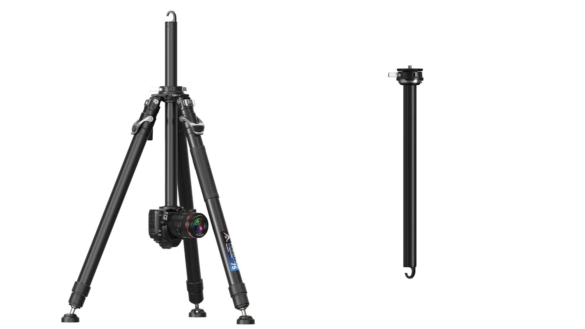 Der Zentralschaft wird per Schnellverschluss in die Halbschale eingeklinkt und erlaubt nicht nur mehr Arbeitshöhe, sondern auch bodennahe Aufnahmen.