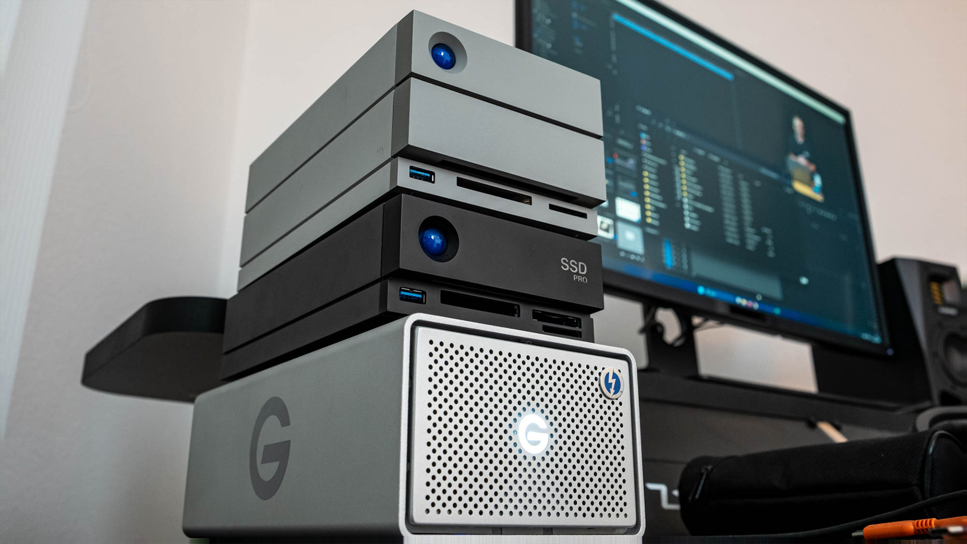 Bei uns kommen am Schnittsystem gleich mehrere externe Festplatten mit RAID zum Einsatz.