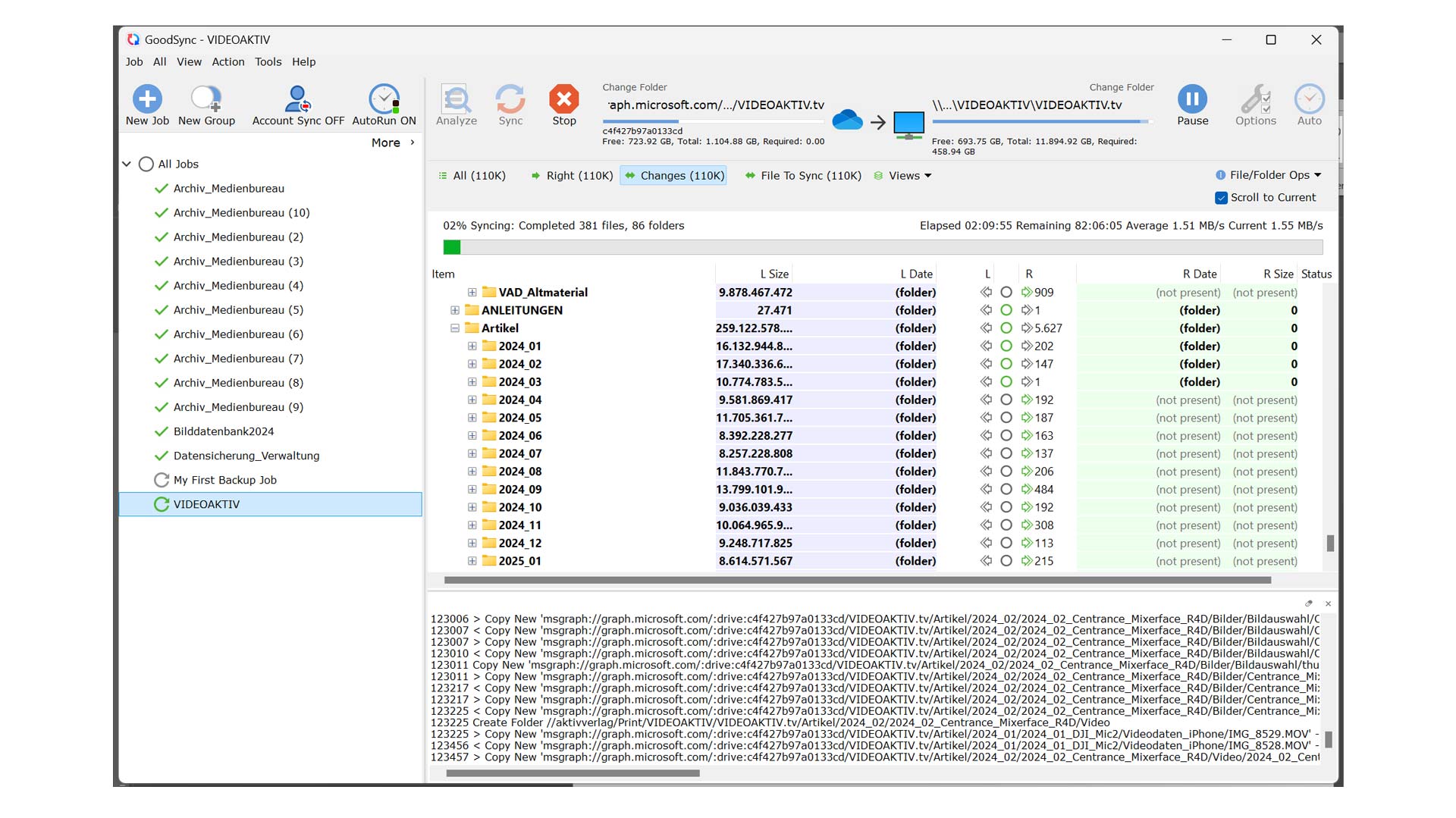 Eine Datensicherung setzt immer eine passende Anwendung voraus. Als einfach bedienbar und gleichzeitig zuverlässig können wir GoodSync empfehlen, mit dem man alle Arten von Backup organisieren kann. So lassen sich Daten von oder auf Cloudspeicher sichern oder eben lokale Daten auf Netzlaufwerke kopieren. Die Anwendung läuft im Hintergrund und beeinträchtigt das parallele Arbeiten am Rechner wenig. Es bietet die Wahl zwischen einem einseitigen Backup und organisiert, falls es dann doch mal nötig wird, auch das zurückübertragen vom Backup. Es gibt verschiedene Optionen (Checksum/Compare Attributes) um sicherzustellen, dass die Daten tatsächlich korrekt kopiert wurden.