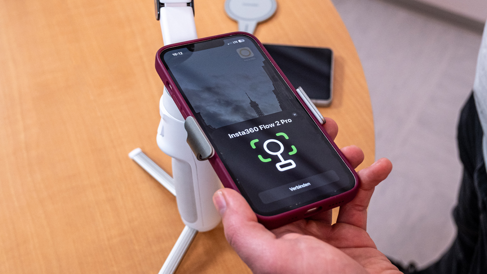 Bei der Nutzung mit Android kam es in einigen Situationen zu kurzzeitigen Tracking-Aussetzern, insbesondere wenn man hinter einem schmalen Gegenstand vorbeiging. Das Gimbal stellte die Verfolgung zwar nach einigen Sekunden wieder her, jedoch lief dieser Prozess beim iPhone spürbar reibungsloser. Auf Nachfrage in der VIDEOAKTIV-Redaktion wurde vermutet, dass dies an der Insta360-App liegen könnte, die möglicherweise besser auf die Kamera des iPhones abgestimmt ist als auf die von Android-Geräten. Beim Verfolgen einer getrackten Person, die direkt nach einem Treppenaufstieg eine schnelle Kurve nahm, geriet das Smartphone kurz ins Wackeln, und das Tracking setzte aus, stabilisierte sich jedoch schnell wieder. Ein Tipp aus der VIDEOAKTIV-Redaktion: Ich habe im Hochformat gefilmt, aber für das Smartphone und das Gimbal wäre es einfacher gewesen, vertikal zu filmen. So hätte das Tracking mehr Spielraum und Fläche, um die Person besser zu erfassen. Dank höherer Auflösung lässt sich dann das Hochformat in der Nachbearbeitung herausrechnen. Aber mal ganz ehrlich: Das ist mir zu umständlich, denn idealerweise sollten die Videos direkt aus dem Smartphone bereit zum Hochladen sein. Die Gestensteuerung funktioniert grundsätzlich zuverlässig, allerdings variierte die Reaktionszeit im Test: In einem Durchlauf mit dem Android-Smartphone dauerte es circa eine halbe Minute, bis das Gerät die Handbewegung erkannte, während es in einem anderen Test sofort reagierte. Nach weiteren Versuchen lief die Gestensteuerung dann wieder einwandfrei und ebenso zuverlässig wie beim iPhone.