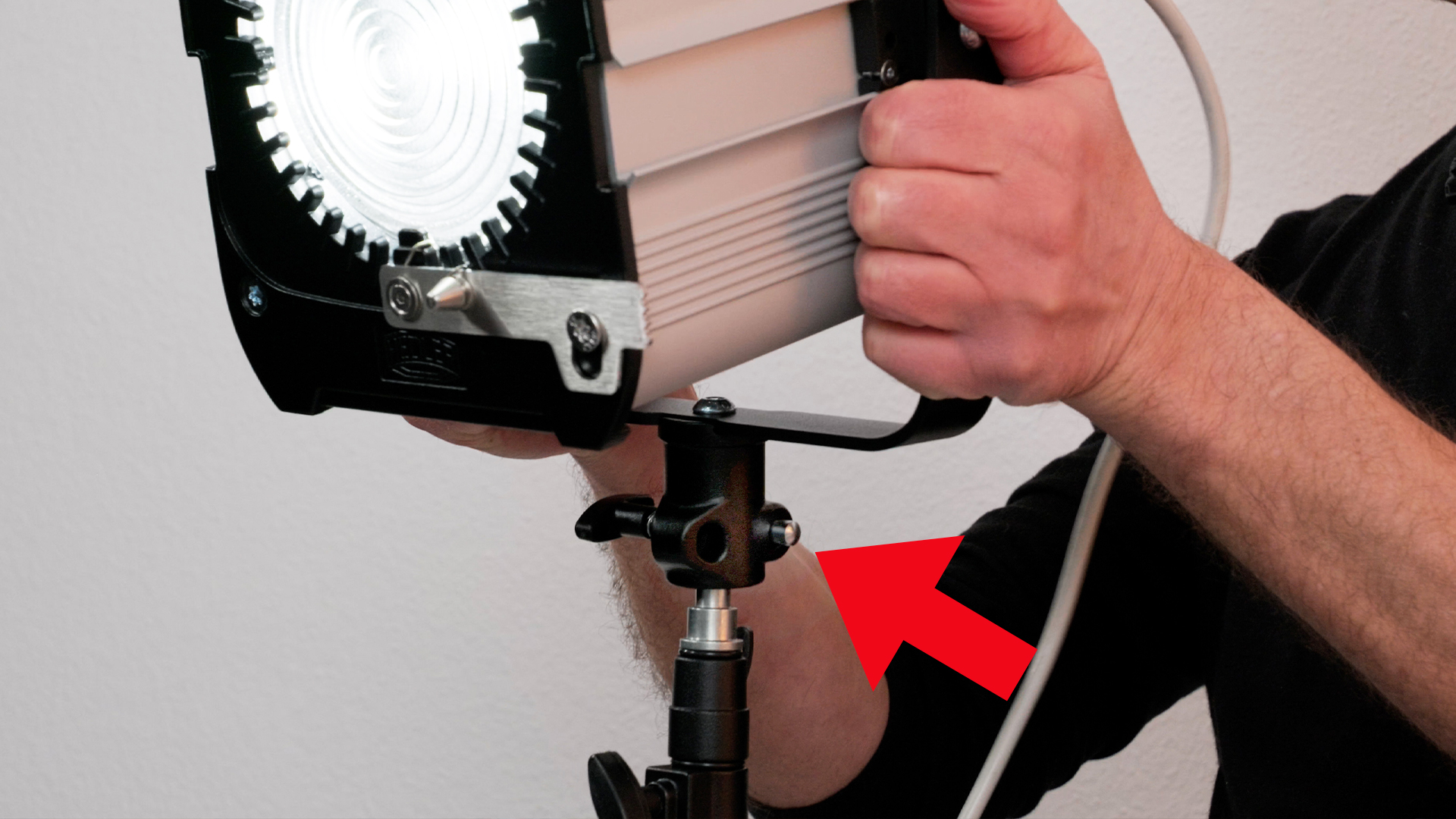 Ein wichtiger Faktor an Filmsets genau wie im Bühnenbau ist die Sicherheit. In der Veranstaltungsbranche und im Studiobereich, wo die Lichter im Normalfall hängend montiert werden, ist eine zusätzliche Sicherung zur normalen Halterung vorgeschrieben. Das geschieht durch eigene Sicherheitskabel, die man am gut dimensionierten Bügel der Profilux einfach befestigen kann. Hedler geht aber noch einen Schritt weiter und versieht die Stativklemme mit einer zusätzlichen Sicherung. Um die Leuchte vom Stativ zu entfernen, muss man nach dem Lösen der Befestigungsschraube noch die Sperre reindrücken. Damit ist die Profilux auch dann gegen Herausfallen gesichert, wenn die Schraube mal nicht ganz angezogen und – grob fahrlässig – auch das Sicherheitskabel vergessen wurde.