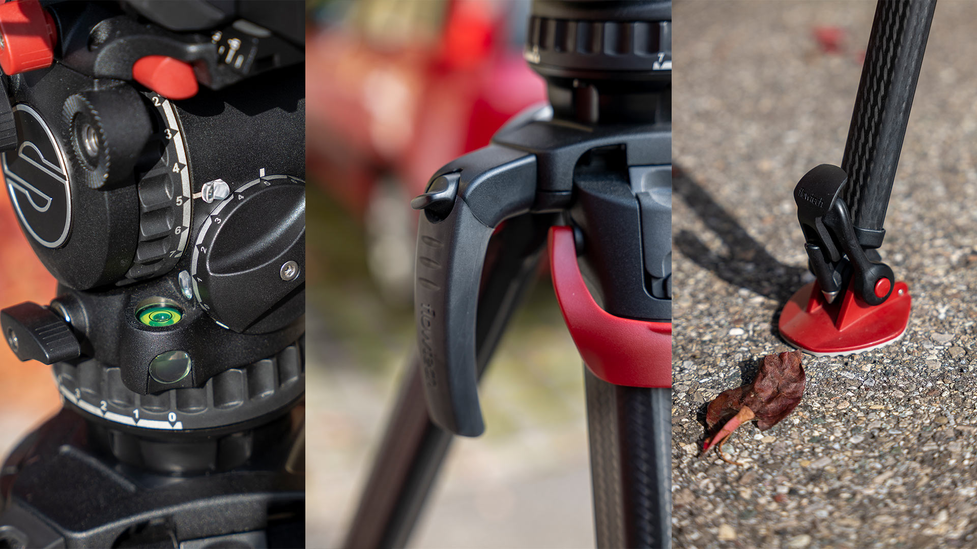 Die Libelle ist, wie der Gewichtsausgleich beleuchtet. Der neue Tragegriff sorgt für ausgewogenere Balance beim Transport mit dem schwereren activ8-Videoneiger. Geschickt sind die neuen Befestigungen der Stativschuhe.