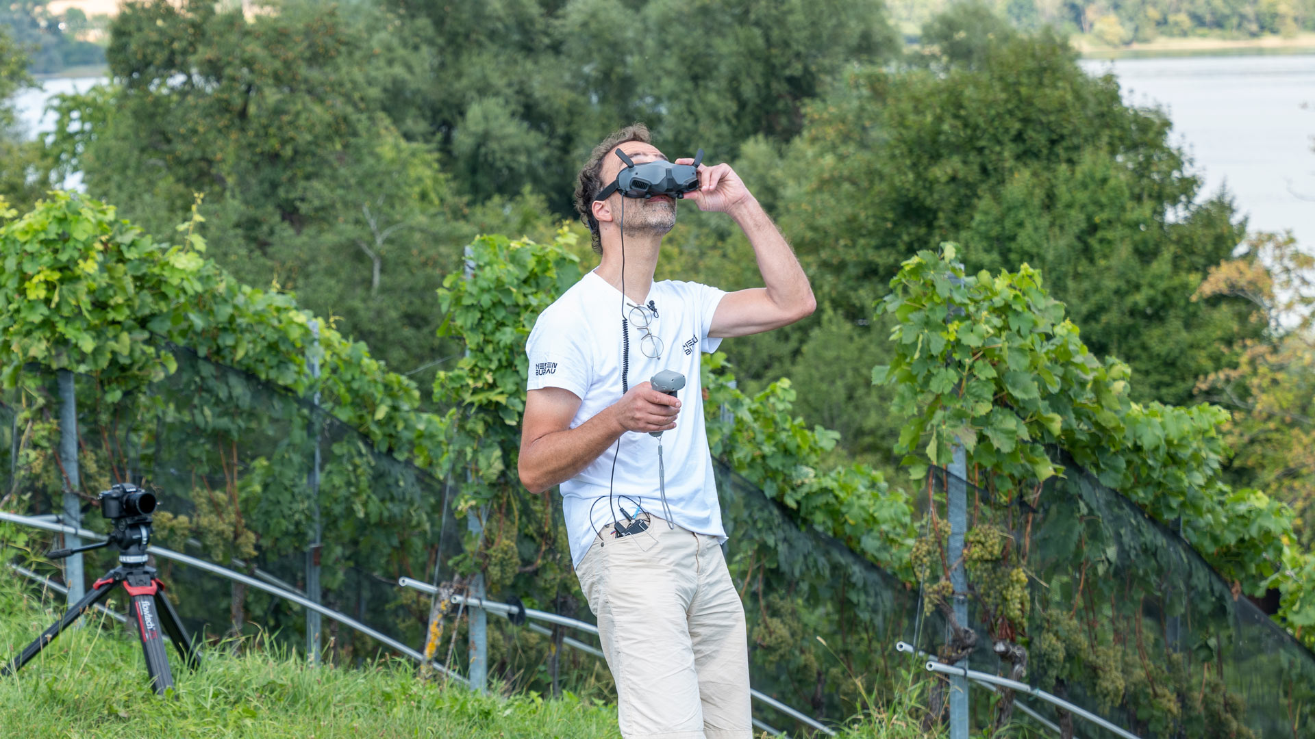 Hie und da ist der Blick über den Brillenrand nötig, damit man abschätzen kann, wo die Drohne steht.