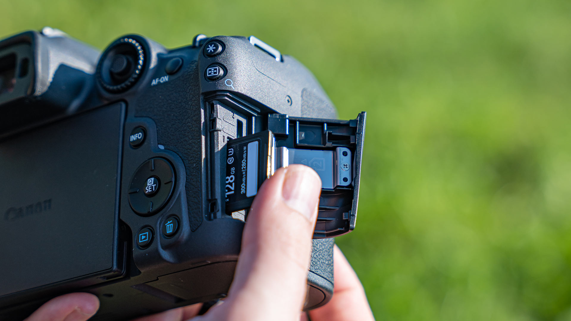 Bei den Speichermedien vertraut Canon auf SD-Karten. Allzu speicherintensive Formate und Bildwiederholungsraten sind deswegen nicht möglich.