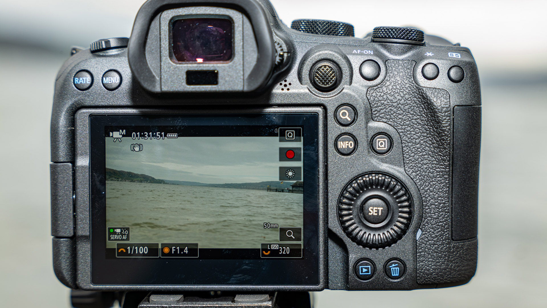 Neu ist das Quick-Menü, das man mit der rechten Taste über das Drehrad erreicht. Der Sucher hat nicht ganz die Qualität der EOS R5.