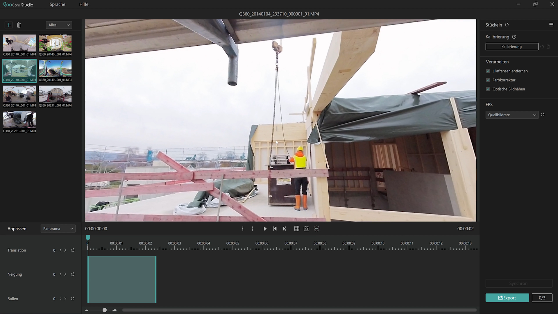 Damit aus zwei Aufnahmen eine wird, müssen die Aufnahmen über die Software QooCam Studio zusammengefügt werden. Am Smartphone übernimmt die QooCam App diese Aufgabe.