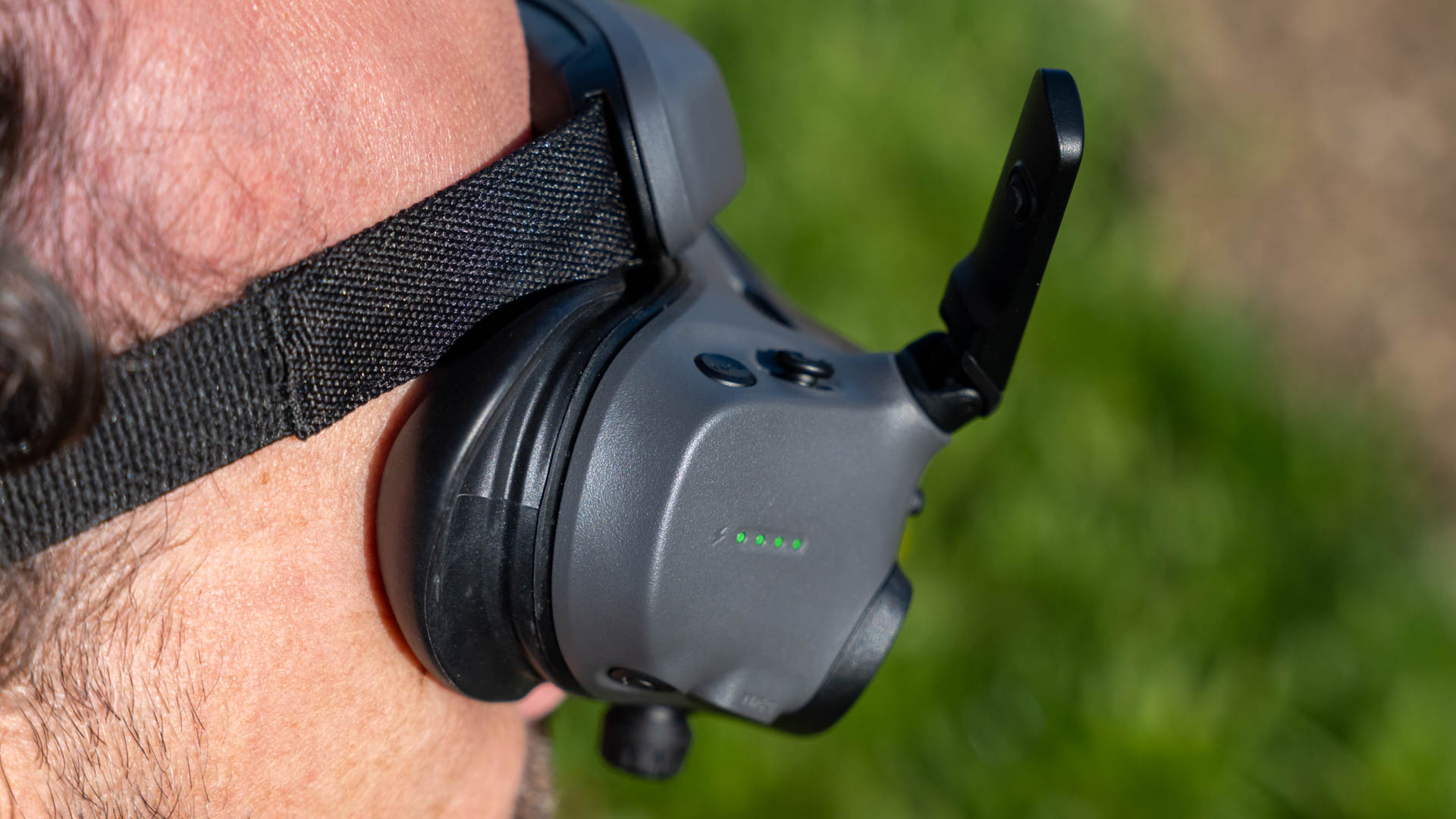 Ebenfalls hilfreich dabei ist die verbesserte Ergonomie – wenn man denn mal die Brille richtig auf sich eingestellt hat. Dazu kann man sowohl die Fehlsichtigkeit an den Okularen einstellen, als auch den Augenabstand mit den unteren einstellen. Hat man mal verstanden wie es geht, ist es eigentlich ganz einfach. Die Brille wiegt theoretisch etwas mehr, doch der Akku sitzt nun auf der Rückseite mittig im Gummiband. Damit zieht nicht mehr ein Kabel die Brille nach unten, was für empfindliche Nasen ein Problem beim Vorgängermodell war. Zudem ist die Auflagefläche deutlich verbessert, so dass nun auch längerem Arbeiten nichts mehr im Wege steht. Auch die Abwärme hat DJI offensichtlich etwas verbessert, wobei das Lüftergeräusch der Brille durchaus dominant ist. Und bei warmen Sommertemperaturen wird es auch weiterhin ganz schön schwitzig unter der Brille.