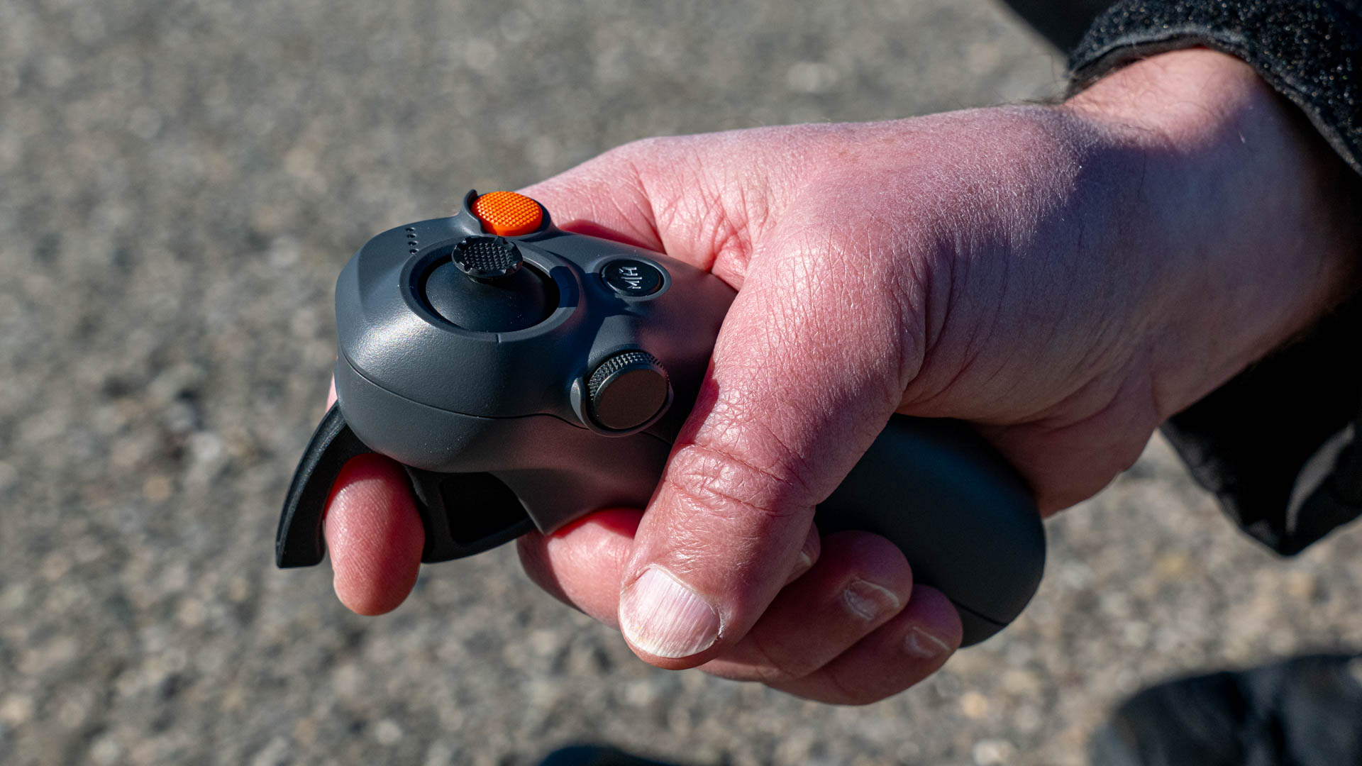 Der Handkontroller ist sehr kompakt und bietet alle wichtigen Funktionen direkt an – ganz um die Bedienung an der Goggles 3 kommt man allerdings nicht herum.