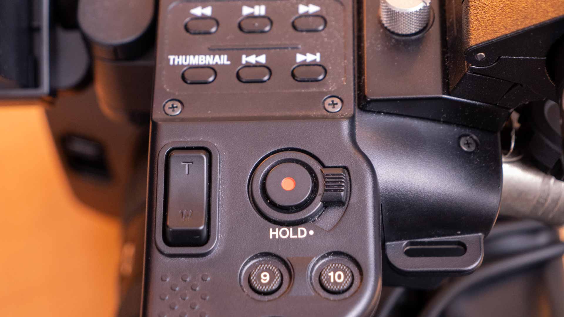 Klingt eigentlich nach wenig Innovation, denn die in den oberen Tragegriff eingelassende Bedienung ist für Camcorder klassisch, aber sie erleichtert bodennahe Aufnahmen - auch das dient der Bildstabilisierung.