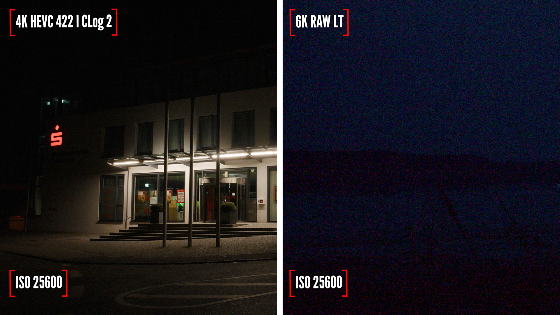 Der Vergleich zeigt deutlich, dass die C80 die höheren nativen ISO-Empfindlichkeiten nicht im RAW LT-Codec nutzt.