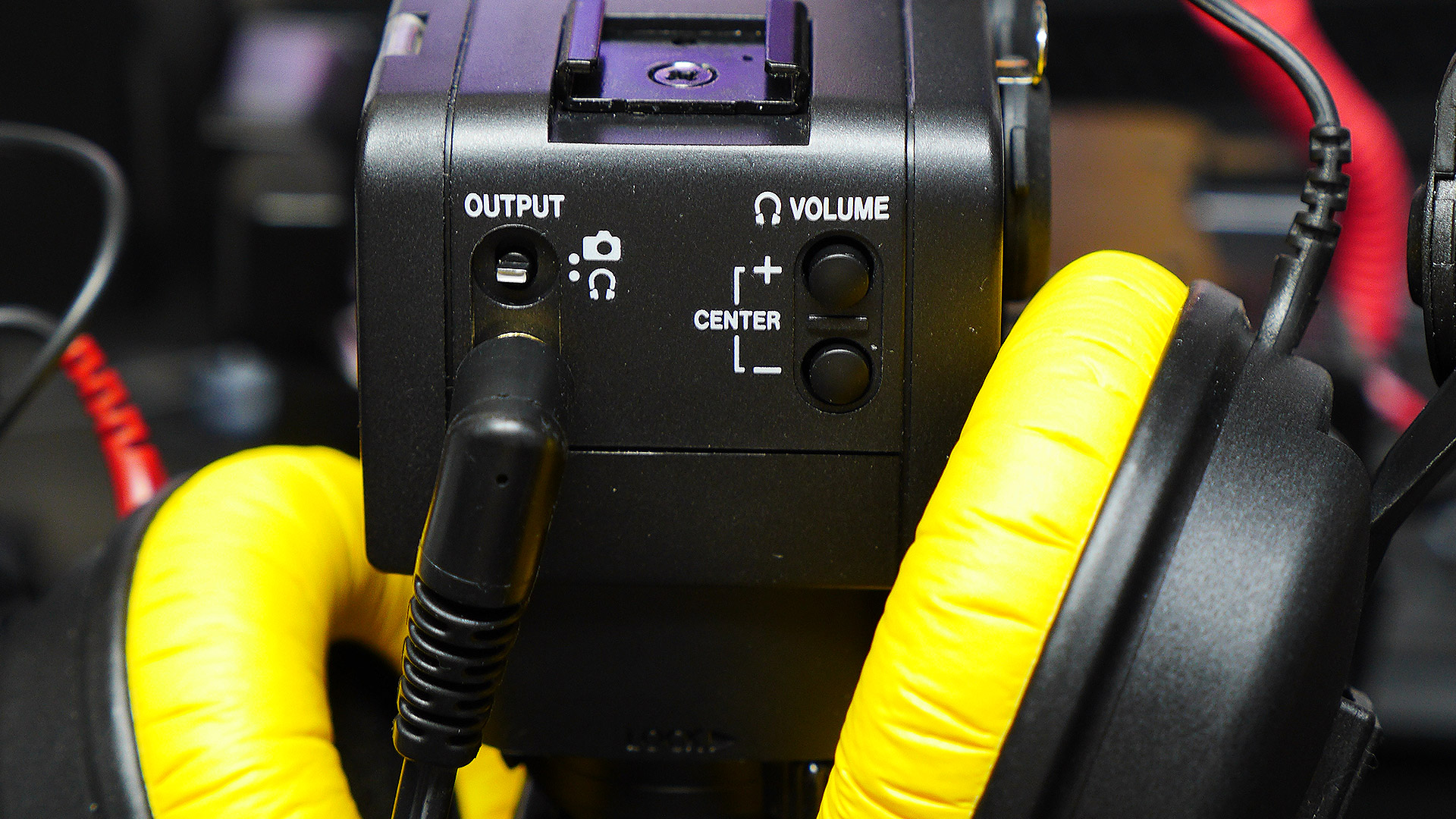 Auf der Rückseite des Tascam findet sich ein Miniklinken-Ausgang, der wahlweise analog eine Kamera oder einen Kopfhörer versorgt.