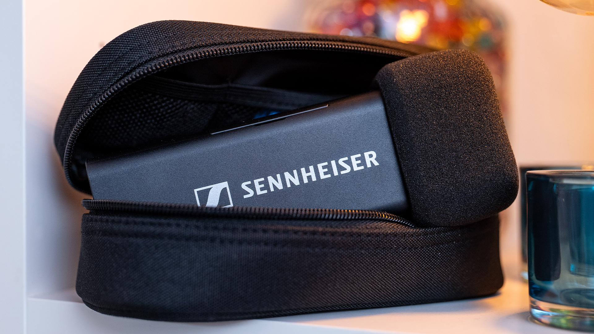 AUFBAUDas Profile Wireless kombiniert zwei Sender mit einem Empfänger, welche mitsamt Adaptern und zwei Magneten zur Befestigung der Anstecksender in einer Ladeschale Platz finden. Beide Sender besitzen ein internes Mikrofon und einen Anschluss für Lavalier-Mikrofone. Sennheiser spendiert den Anschlüssen Gewinde, sodass man kompatible Lavalier-Mikrofone verriegeln und damit gegen unabsichtliches Herausziehen sichern kann. Dadurch, dass man beide Sender mit den Mikrofonen nach oben befestigt, kann man die Ladeschale mit dem im Lieferumfang enthaltenem Windschutz als zugegeben etwas klobiges Handmikrofon verwenden. Zum einfachen Transport von Ladeschale, Adapterkabeln (TRS sowie USB-C) sowie Windschutzen für die Sender legt Sennheiser eine eigene Transporttasche bei.