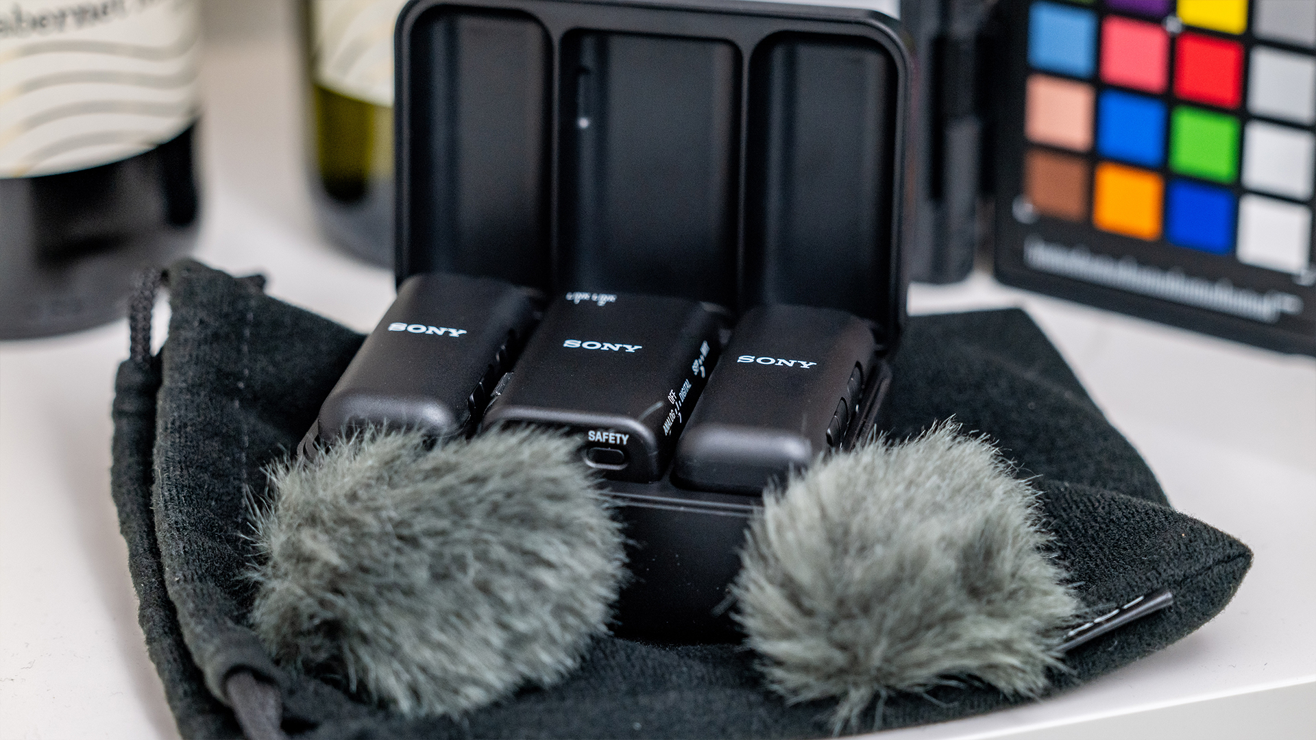 Das Konzept aus einem Empfänger und zwei Sendern mitsamt internem Mikrofon ist der aktuelle Standard für Digitalkamera-Funkstrecken und auch Sony macht da keine Ausnahme. Ebenso üblich ist die Aufbewahrungsschale mit integriertem Akku und Ladefunktion für Sender und Empfänger. Sony legt dazu noch zwei Fell-Windschutze sowie einen Stoffbeutel bei. Die Windschutze rasten – inzwischen Standard – im TRS-Mikrofonanschluss ein und halten damit sehr sicher. Alle Komponenten sind gut verarbeitet und machen trotz Plastikgehäuse einen wertigen Eindruck - ein Qualitätsmerkmal, was man von Sony gewohnt ist und bei dem Preis auch erwarten darf.