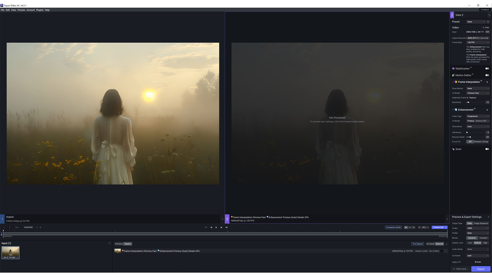 Topaz Video AI: Eine KI, die verwendet wird, um Videoqualität zu verbessern, indem die Auflösung erhöht und die Bildrate angepasst wird. Dieses Tool ermöglicht so eine größere Flexibilität in der Postproduktion.
