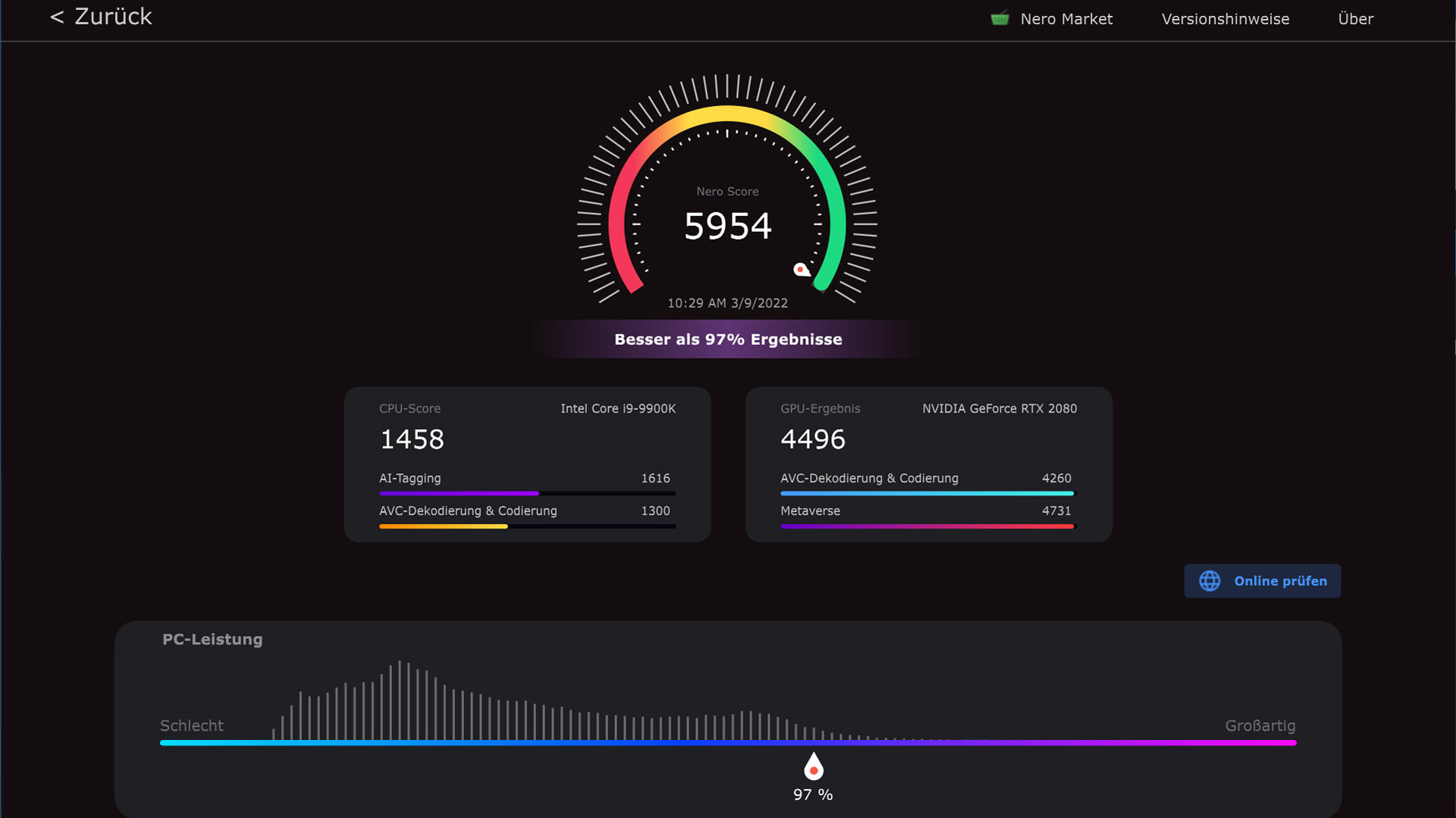 Kostenlos für jeden bietet Nero dagegen Nero Score an. Das Tool gibt’s zum Beispiel über den Windows Store und soll realistische Einschätzungen für die Leistung der eigenen Hardware im Multimedia-Bereich liefern. Damit verbunden ist eine Website, in der man nachschauen kann welcher Prozessor bei welchem Prozess am besten abschneidet. Nero hofft hier die Basis für Leistungsmessungen in diesem Segment zu werden.