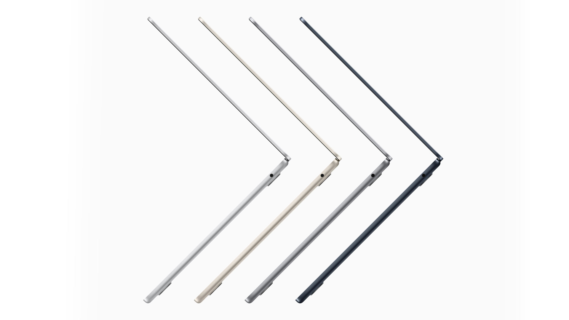 Das MacBook Air gibts in vier Farben. Sowohl das neue MacBook Air als auch das 13" MacBook Pro nutzen jetzt 100 Prozent recycelte Seltene Erden in den Gehäusemagneten. Das MacBook Air ist zudem zu 100 Prozent aus recyceltem Aluminium im Gehäuse gefertigt.