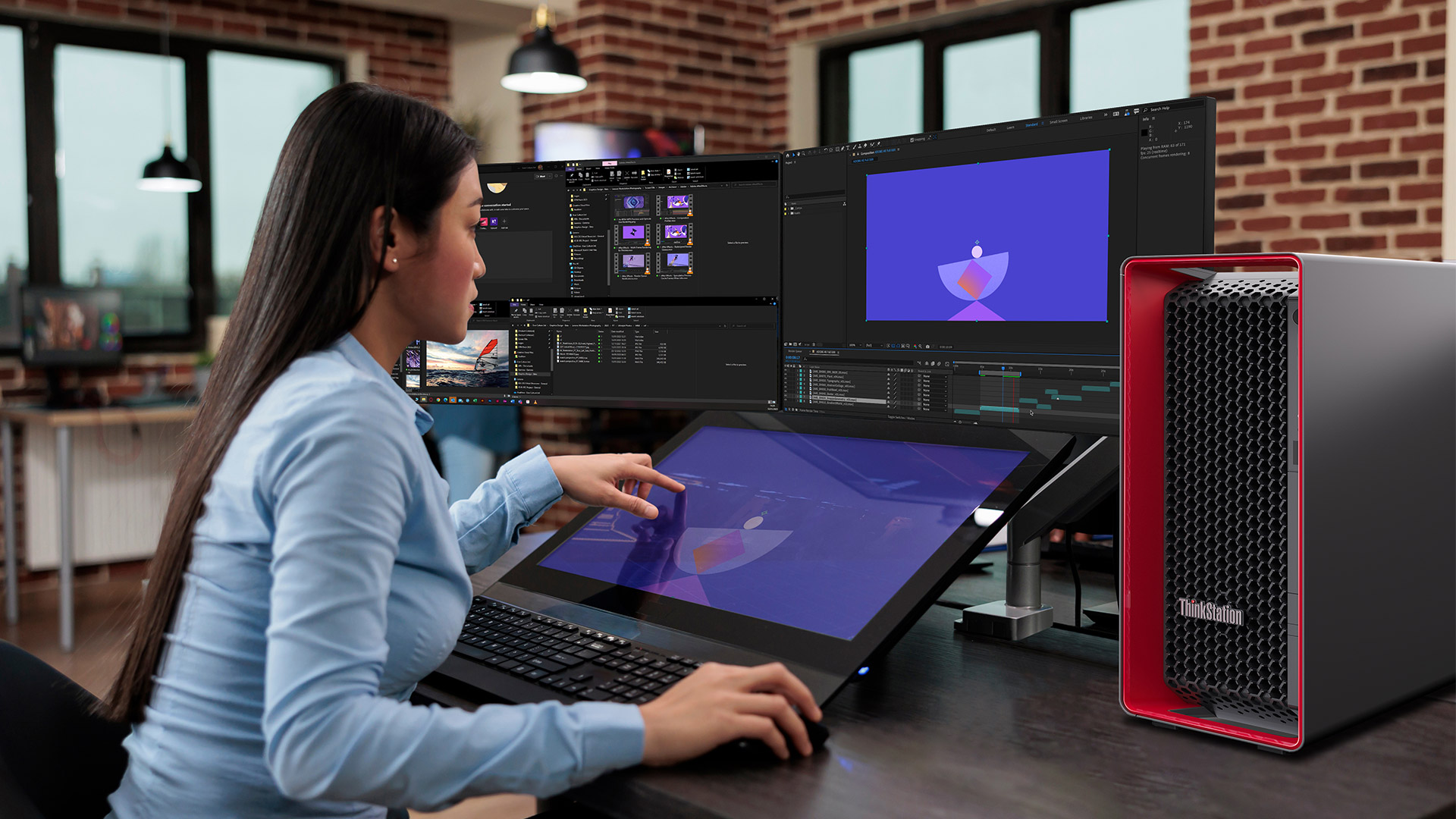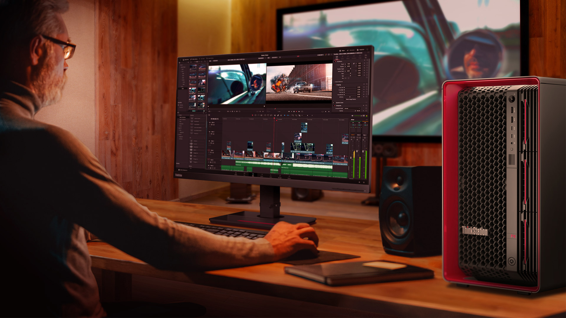 ThinkStation P7 Die ThinkStation P7 verfügt über eine ebenfalls neue Rechenarchitektur mit aktuellen Intel Xeon W CPUs, die bis zu 56 Prozessorkerne in einem einzigen Sockel unterstützen. Damit lassen sich dann natürlich rechenintensive Multithreading-Aufgaben bewältigen. Die ThinkStation P7 wurde nach eigener Aussage von Lenovo dafür entwickelt, um die „höchsten Leistungs- und Zuverlässigkeitsanforderungen von Workloads zu erfüllen, die in der Vergangenheit typischerweise auf Server oder Cloud-Ressourcen angewiesen waren“. So ist die Workstation für den Einsatz in einer Vielzahl von Desktop- und Rechenzentrumsumgebungen in einem 4U-Gehäuse optimiert. Sie liefert eine Unterstützung für bis zu drei Dual-Slot Nvidia RTX 6000 GPUs der Ada-Generation und soll damit dann Content Creators, Architekten, Designer, Ingenieure und Datenwissenschaftler für Grafik-, Visualisierungs-, Echtzeit-Rendering-, CAE- und AI-Leistung zufriedenstellen. Lenovo spricht dabei auch explizit von „komplexen Videoproduktions- und Rendering-Workflows“, die die ThinkStation P7 problemlos meistern können soll. Dafür stellt die Workstation dann insgesamt 1 Terabyte DDR5 RAM und bis zu 52 Terabyte als SSD- und HDD-Laufwerke bereit.