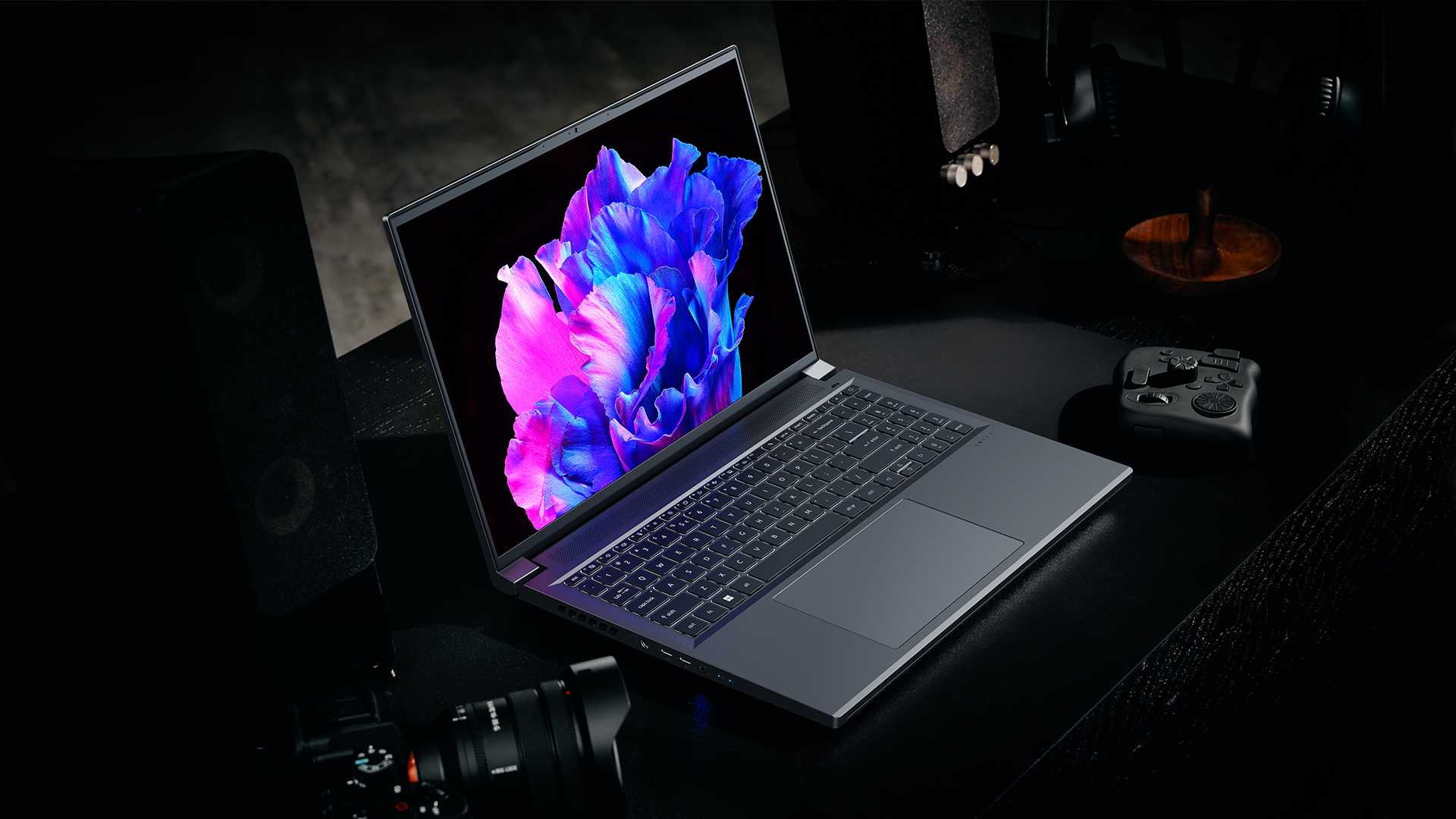 Das Acer Swift X 16 hat ein farbtreues OLED-Display mit 500 nits maximaler Helligkeit integriert und offeriert Anschlüsse für USB-C, HDMI 2.1 und bietet auch Wi-Fi-6E-Konnektivität.