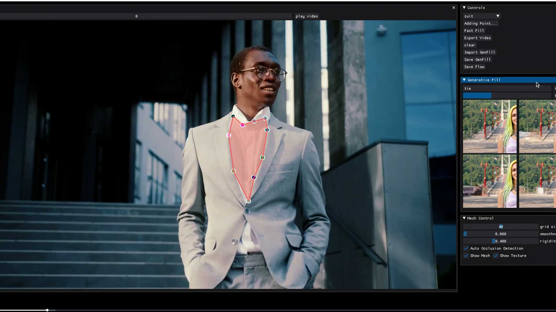 Dem Modell einfach eine Kravatte umhängen - das zeigt Adobe im Video und betont, dass dabei auch die Licht- und Schatteneffekte korrekt auf das neue Objekt gespiegelt werden. Wohlgemerkt im bewegten Video.