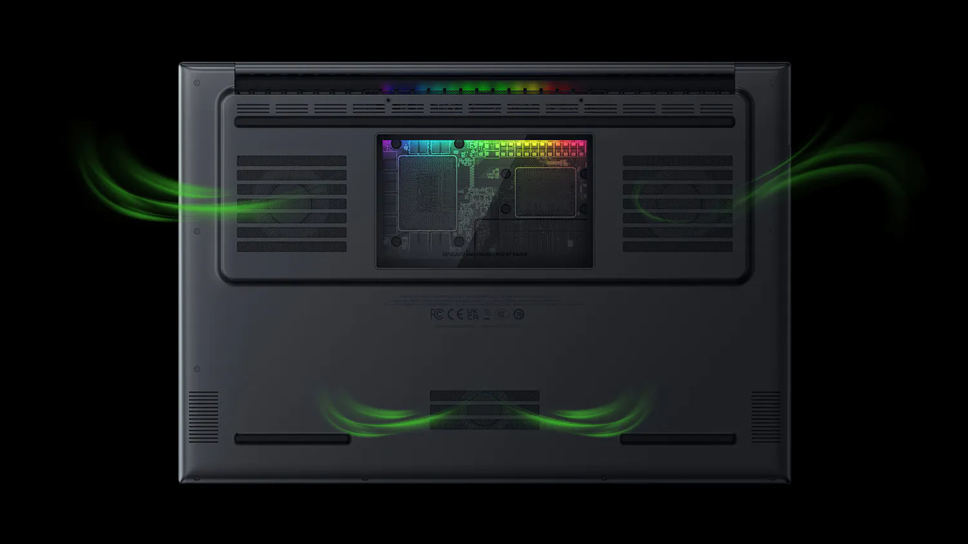 Das 18-Zoll-Dual-Mode-Display bietet direktes Umschalten zwischen zwei Auflösungen: 3840x2400 Pixel mit 240 Hz Bildwiederholfrequenz für 4K-Qualität bei kreativen Anwendungen sowie 1920x1200 Pixel mit einer schnellen Bildwiederholfrequenz von 440 Hz für reaktionsschnelles Gaming. Razer verspricht mit dem Display eine Reaktionszeit von 3,0ms und eine 100-prozentigeige Abdeckung des DCI-P3-Farbraumes. Die verbaute Nvidia GeForce RTX 5090-Grafikkarte soll leistungsstarke Grafikperformance in allen Anwendungen bieten. Zudem soll das KI-gestützte Nvidia DLSS 4 nicht nur Spiele, sondern auch Anwendungen wie Videoschnitt und Bildbearbeitung optimieren. Für maximale Rechenleistung setzt Razer auf den Intel Core Ultra 9 275HX mit 24 Kernen und einer Taktfrequenz von bis zu 5,4 GHz. Damit verspricht Razer die mühelose Bewältigung rechenintensiver Kreativ-Workflows. Unterstützt wird dies durch ein fortschrittliches Kühlsystem: Drei Lüfter und eine dampfgekühlte Kammer mit den laut Razer dünnsten Abluftlamellen ihrer Klasse sollen eine effektive Wärmeableitung ermöglichen.