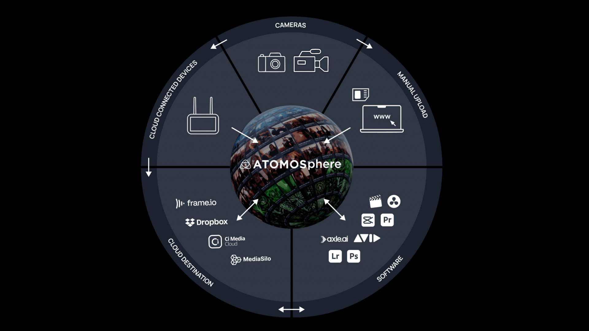 Laut Atomos dient die Cloud-Lösung vor allem dem schnellen Datenaustausch und der Beurteilung der Aufnahmen mit Produktionspartnern und Kunden. Zudem diene Atmosphere der Geräteregistrierung – Atomos-Nutzende erhalten kostenfrei 20 Gigabyte Cloudspeicher. Die kostenpflichtigen Programme starten bei monatlich zehn Dollar für 500 Gigabyte oder jährlich 159 Dollar für ein Terabyte Speicherplatz. Atomos spricht von einer nahtlosen Integration mit Ninja- und Shogun-Recordern, Atomosphere unterstützt laut Hersteller jedoch auch Daten aller andere Kameras und Rekorder. Zudem arbeite die Lösung mit anderen Cloud-Diensten, wie Frame.io, Sony CI Media oder Dropbox zusammen. Die Sicherheit von Atomosphere sei durch Kooperationen von Atomos mit Storj Cloud-Lösung und der Lyve Cloud des Anbieters Seagate gewährleistet, was zudem die Geschwindigkeit beim Hochladen erhöhe.