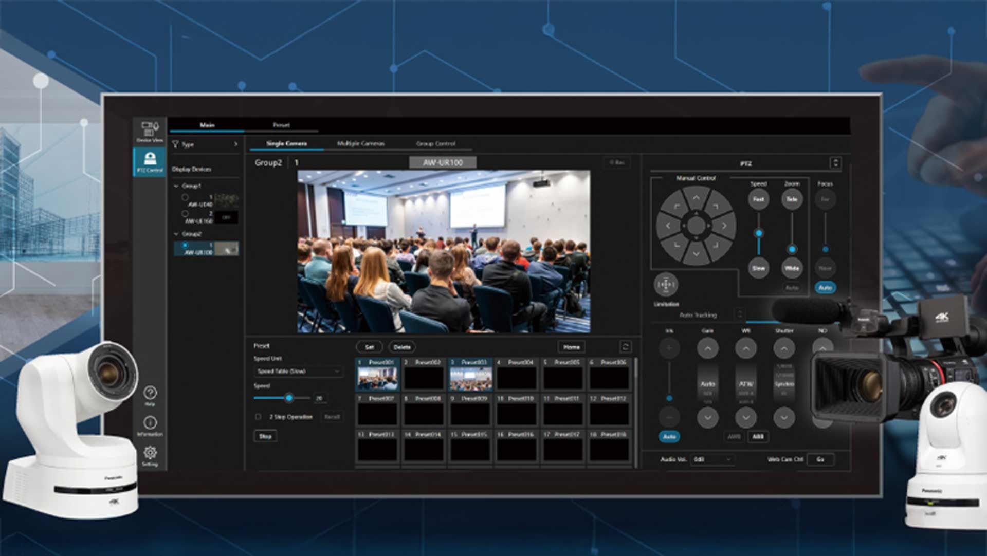 Mit der Media Produktion Suite zielt Panasonic in erster Linie auf die Event-Aufzeichnungen, Hörsäle und kleine Studios, die mit der Software PTZ-Kameras verwalten und steuern können.