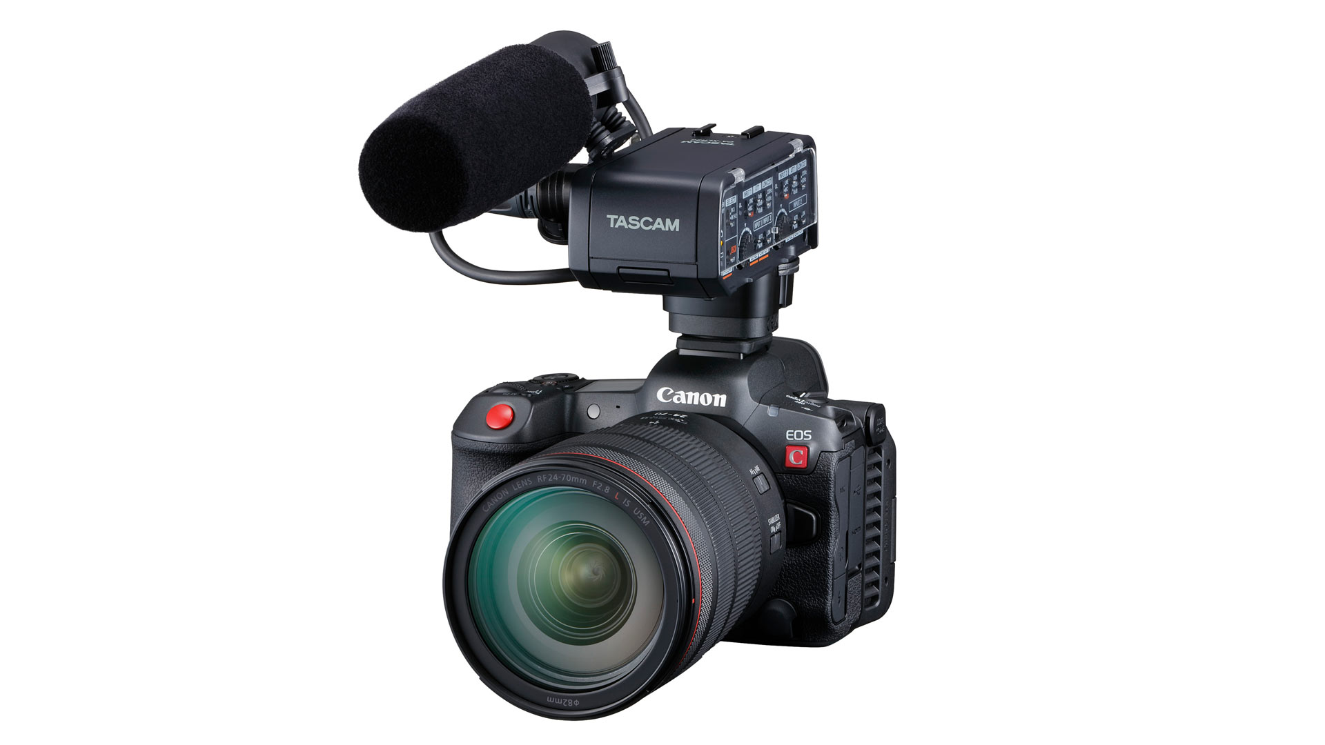 Wie schon die R3 und der Camcorder XF605 bekommt auch die EOS R5 C den Multifunktions-Zubehörschuh mit dem sich sowohl das DM-E1D Stereomikrofon als auch der XLR-Adapter von Tascam CA-XLR2d Audio nutzen lassen. Der Multifunktions-Zubehörschuh ist zudem mit den Speedlite EX Blitzgeräten kompatibel. Für die leichtere Integration ins Profi-Umfeld liefert die EOS R5 C einen Timecode Ein-/Ausgang. Die Kamera kann mit der Content Transfer Mobile App FTP-Übertragungen organisieren und ermöglicht damit die Bearbeitung von ML-G2-Metadaten.