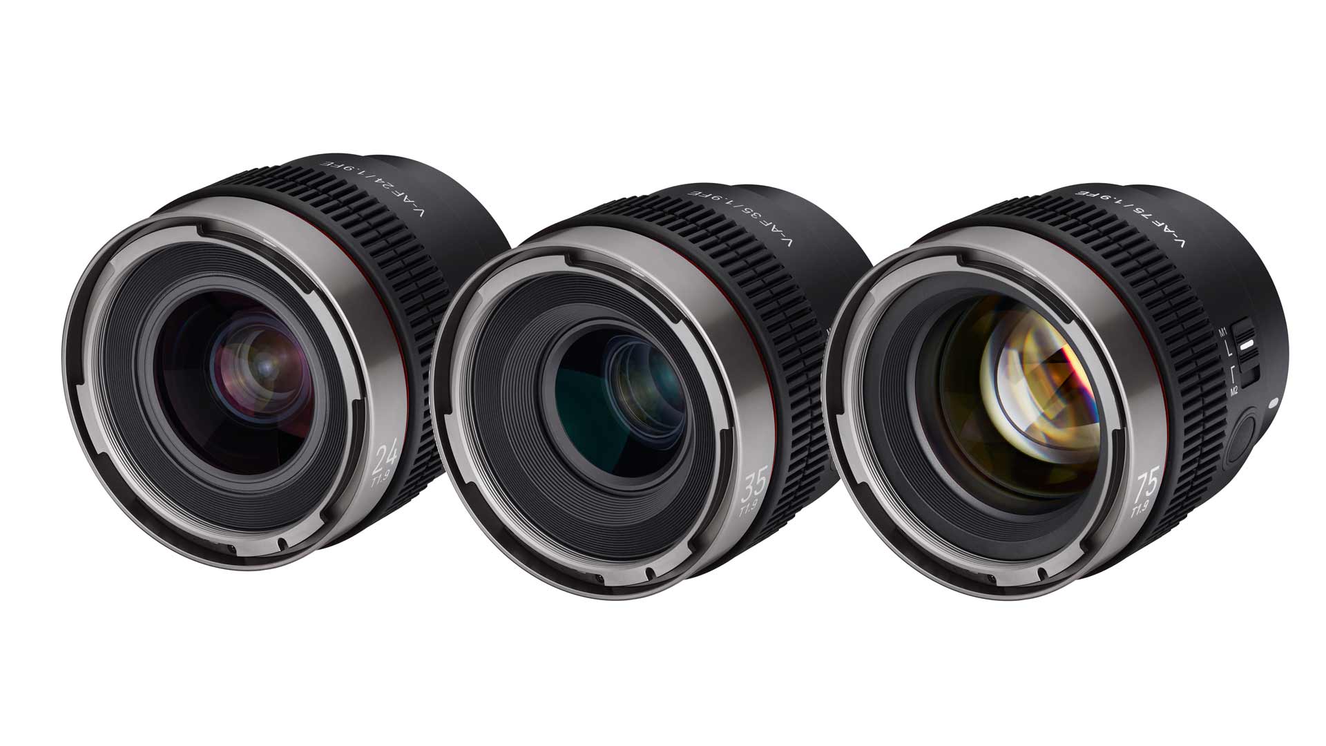 Nach dem V-AF 75mm T1.9 FE gehen nun zwei weitere Brennweiten (V-AF 24mm T1.9 FE und V-AF 35mm T1.9 FE) der Objektivreihe an den Start. Im nächsten Jahr wird das Line-Up noch um die Brennweiten 20mm und 45mm ergänzt. Die Objektive haben mit T1.9 eine hohe Lichtstärke und wie üblich einen einheitlichen Formfaktor, der zudem optimiert für die Verwendung auf Gimbals und an Drohnen sein soll: Dank einer einheitlichen Gewichtsverteilung sollen Gimbals beim Objektivwechsel nicht neu kalibriert werden müssen. Die einheitliche Positionierung des Blenden-/Fokusrings macht einen Objektivwechsel einfacher und schnell. Das Gewicht gibt Samyang mit 280 Gramm an, die Größe ist mit 73 x 70 mm relativ kompakt.