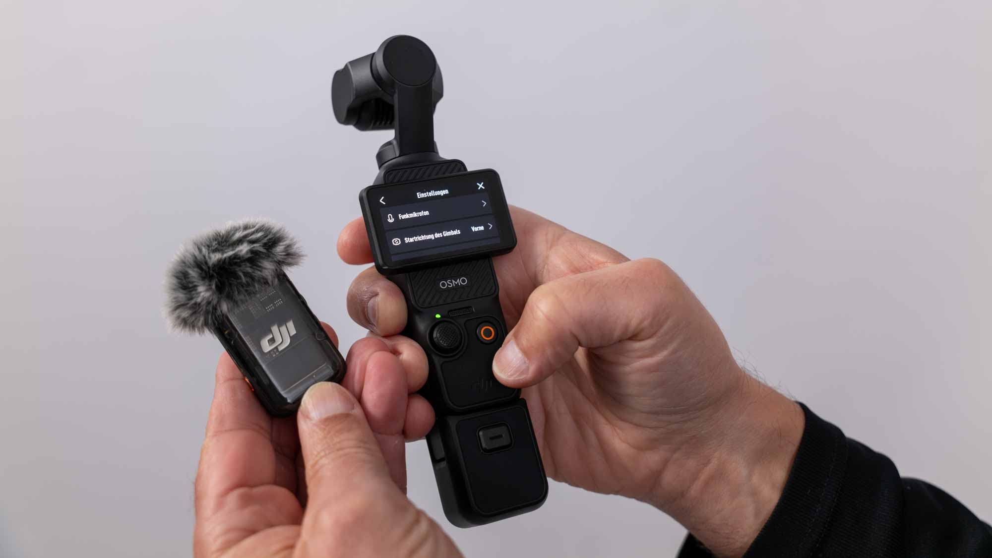 DJI liefert im größeren Paket gleich ein Funkmikrofon mit, das direkt mit der Osmo Pocket 4 kommuniziert.