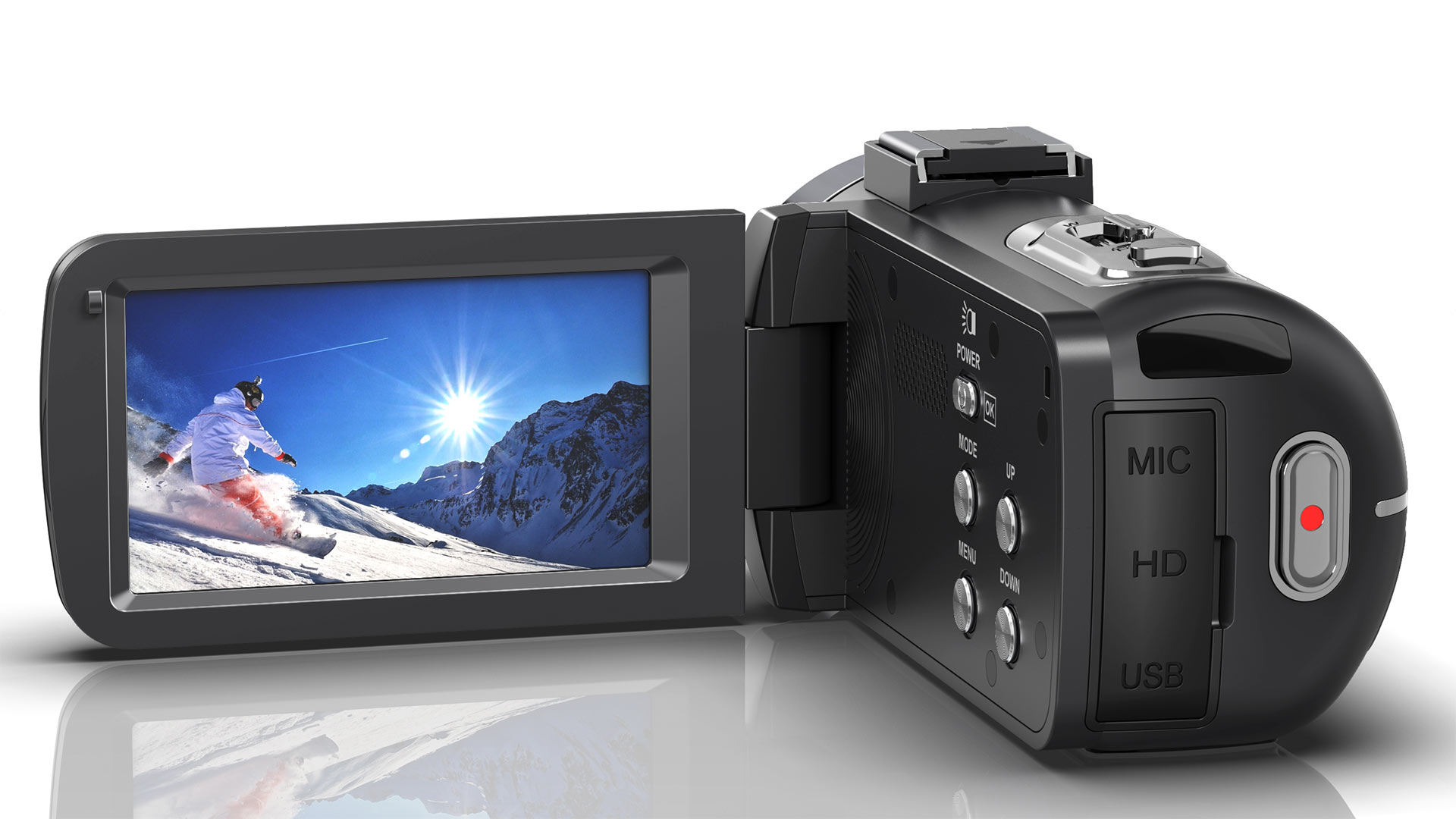 Der Pearl Somikon DV-910.uhd ist ein klassischer Camcorder. Auf der Displayrückseite befindet sich ein kleines Kopflicht, der Zoom arbeitet nur digital.