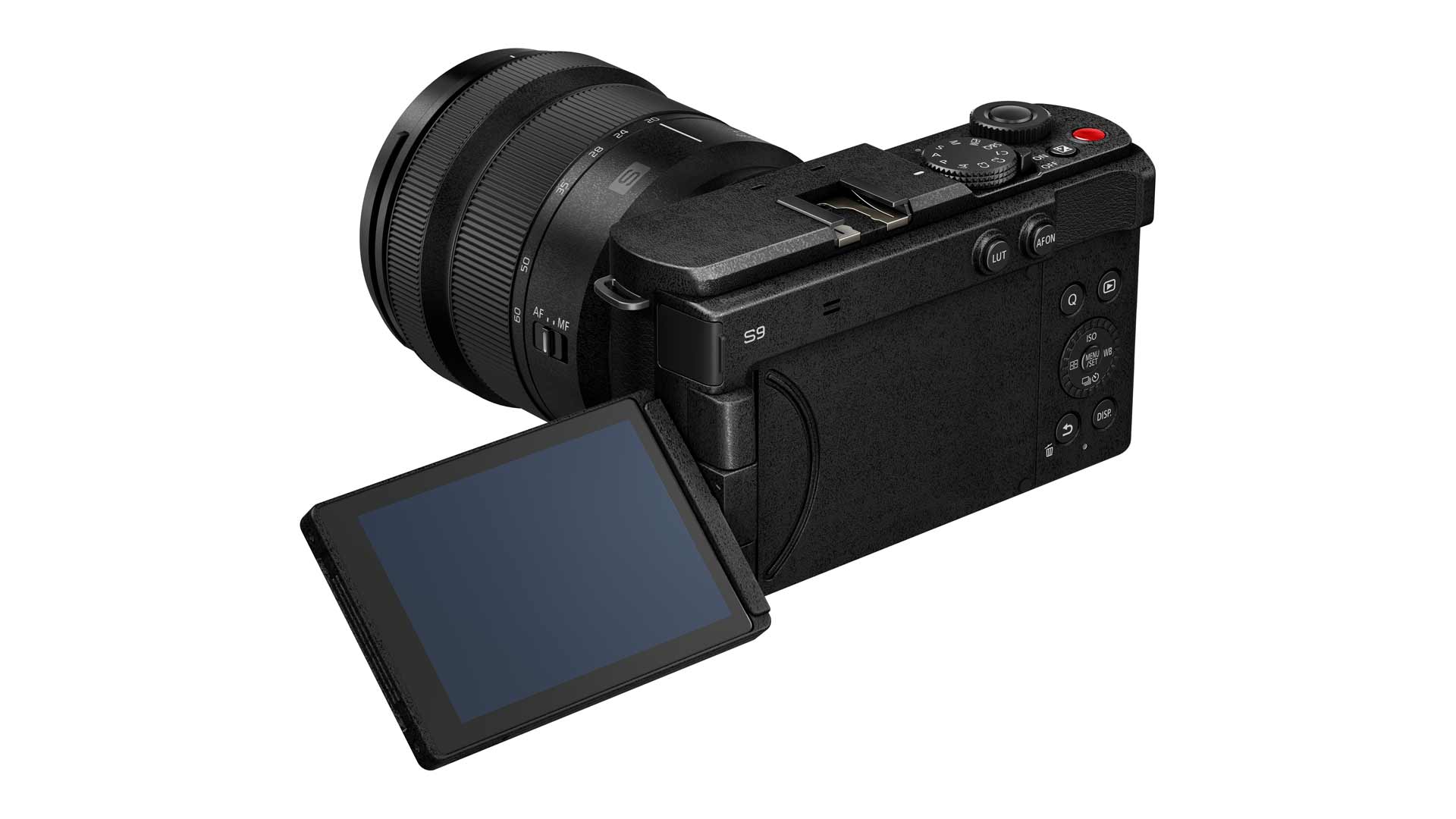 Die Lumix S9 ist besonders kompakt, doch dafür verzichtet Panasonic auf den Sucher und integriert nur einen passiven Zubehörschuh.