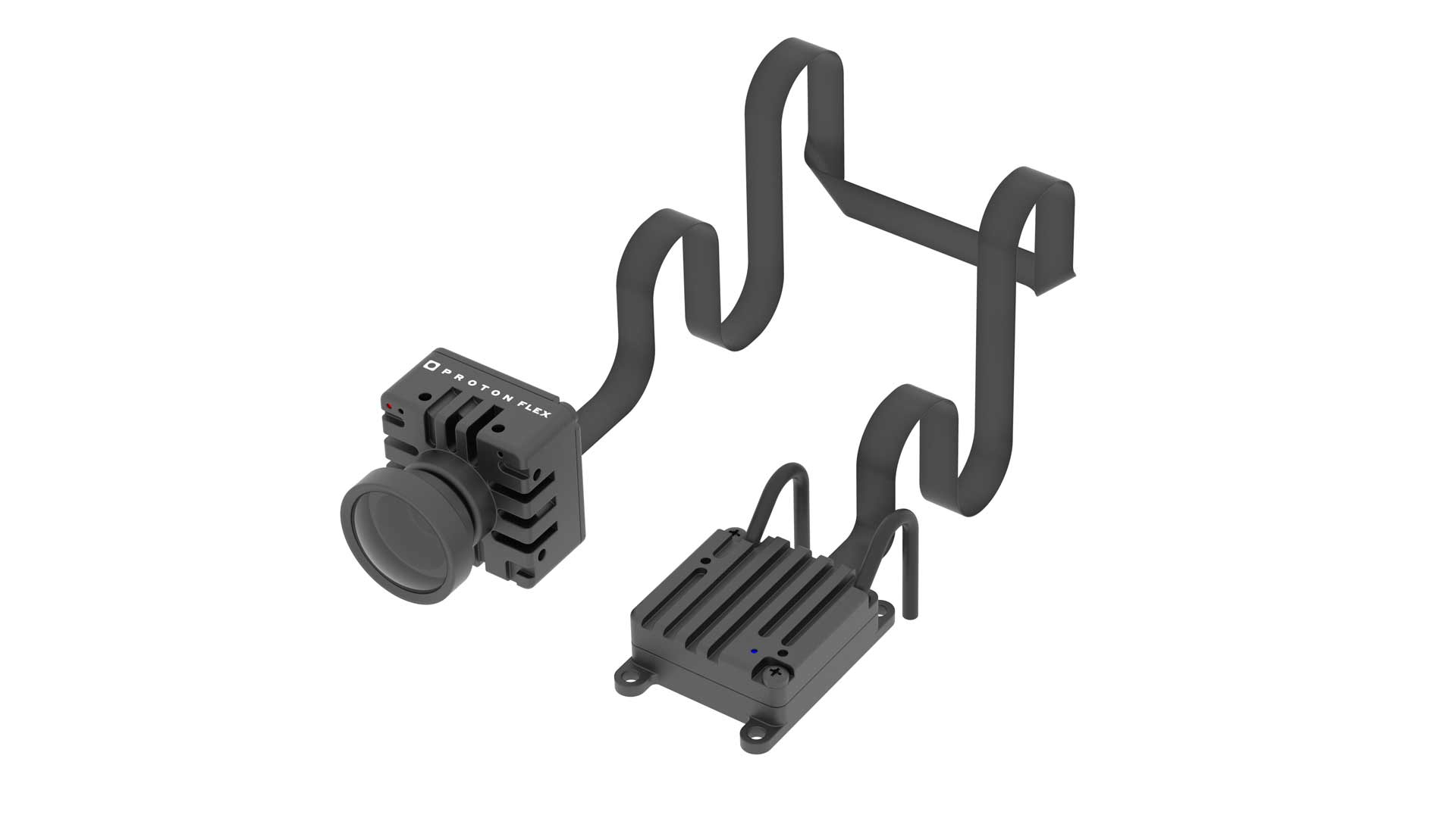 Bei der Proton Flex handelt es sich um eine miniaturisierte Kamera, die über das flexible Design immer dann optimal sein soll, wenn es kaum Platz für die Kamera gibt und entsprechend auch der Wärmeabtransport problematisch ist. Das Objektiv ist durch ein flexibles Flachbandkabel vom Hauptgehäuse getrennt. Durch die Trennung des Objektivs mit dem Sensor auf der einen Seite und des Videoverarbeitungschips mit der Stromversorgung auf der anderen Seite macht man die Kamera gerade für enge Verhältnisse und extreme Anforderungen wie zum Beispiel im Motorsport- und bei Helmanwendungen ideal. Die geteilte Konstruktion von Objektiv und Videoprozessor verbessert zudem die Gewichtsverteilung. Die Proton Flex soll Außentemperaturen von bis zu 75°C standhalten.