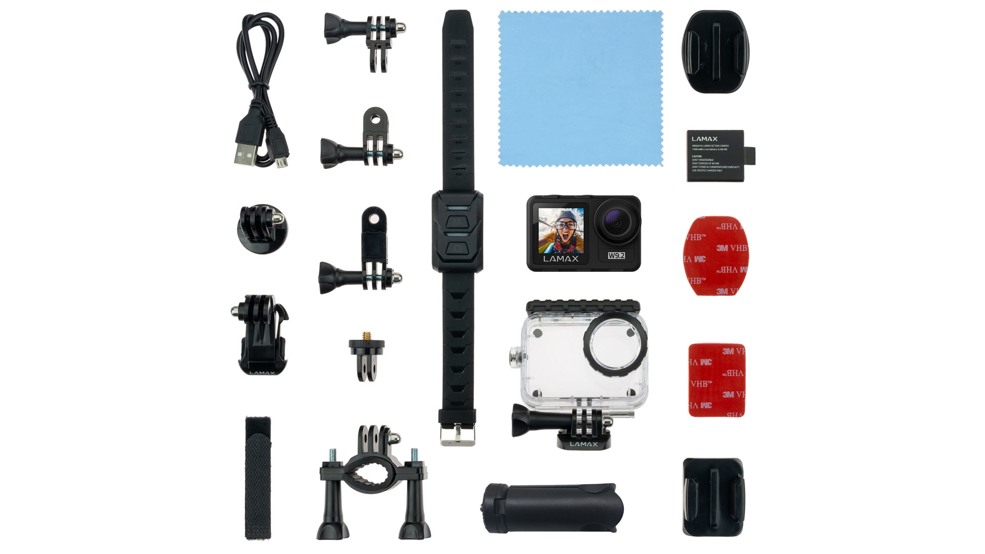 Wie bei den günstigen Modellen üblich versucht Lamax über den Lieferumfang zu punkten und liefert neben der Fernbedienung auch Halterungen sowie ein Tauchgehäuse mit.