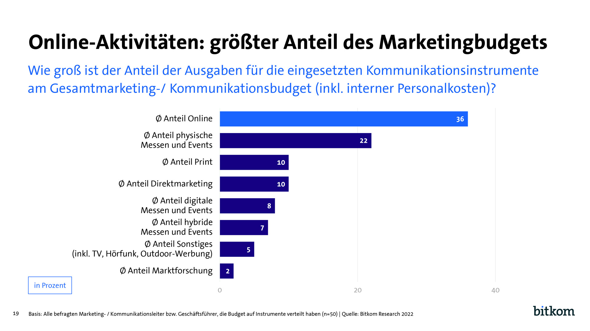Das größte Budget der Digitalbranche läuft ins Online-Marketing. Physische Messen und Events haben aber wieder an Bedeutung gewonnen.